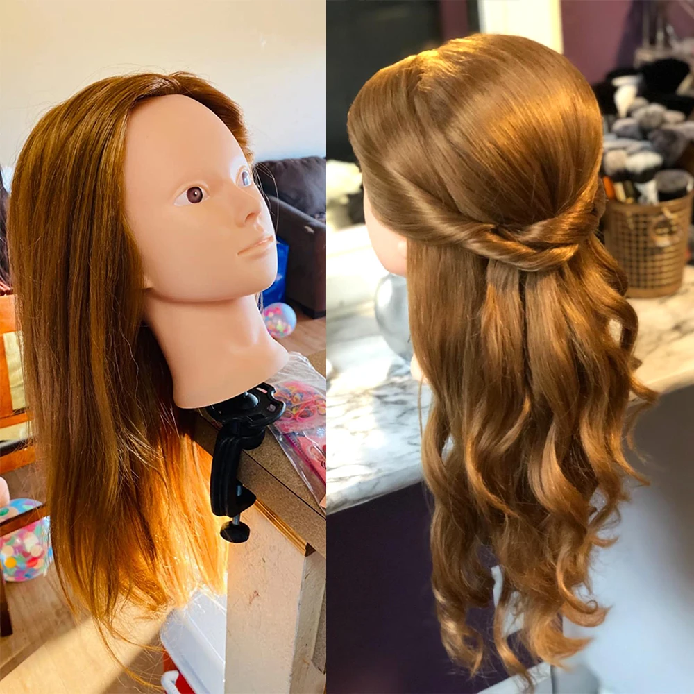 85% Real Human Hair Makeup Training Head With Hair For Hairdressing Hairstyle Hairdresser Practice Cosmetology Manikin Doll Head