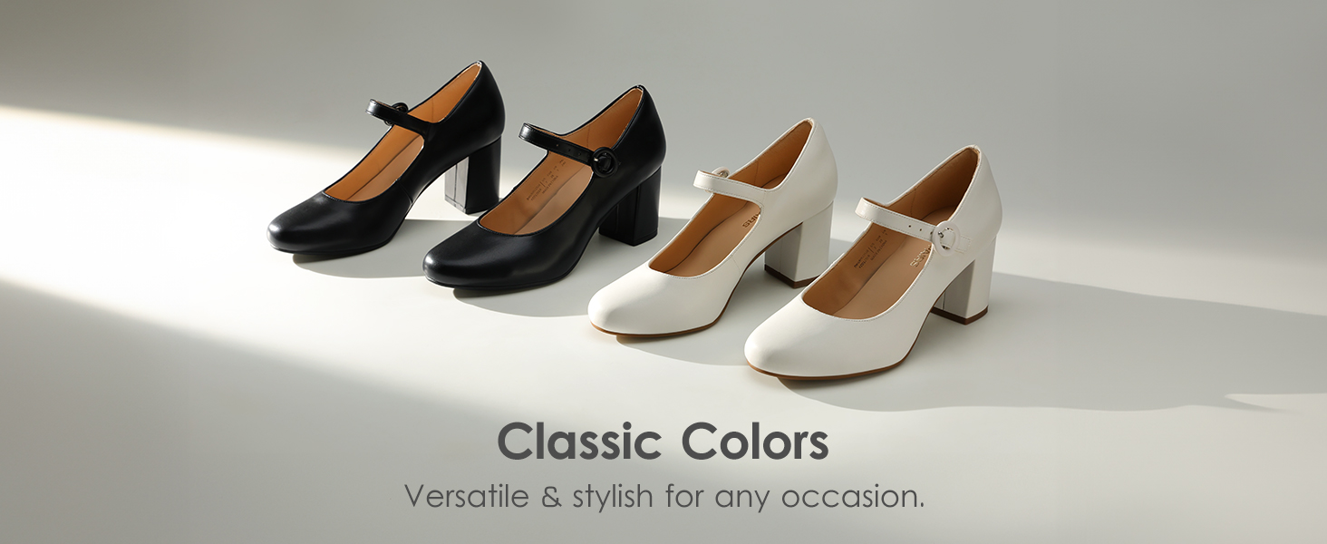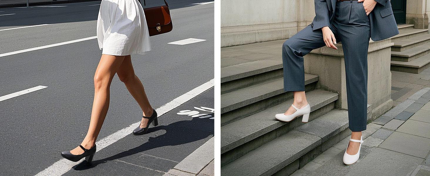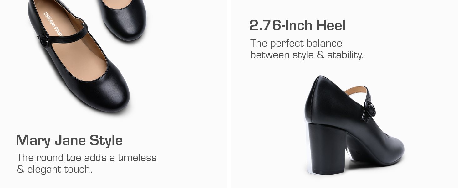 • Walk With Confidence: Strut in comfort and style with these women's fashion pumps. Set on a 2.76-inch chunky heel, these women's Mary Jane heels elevate your height while visually elongating your legs for a standout look.