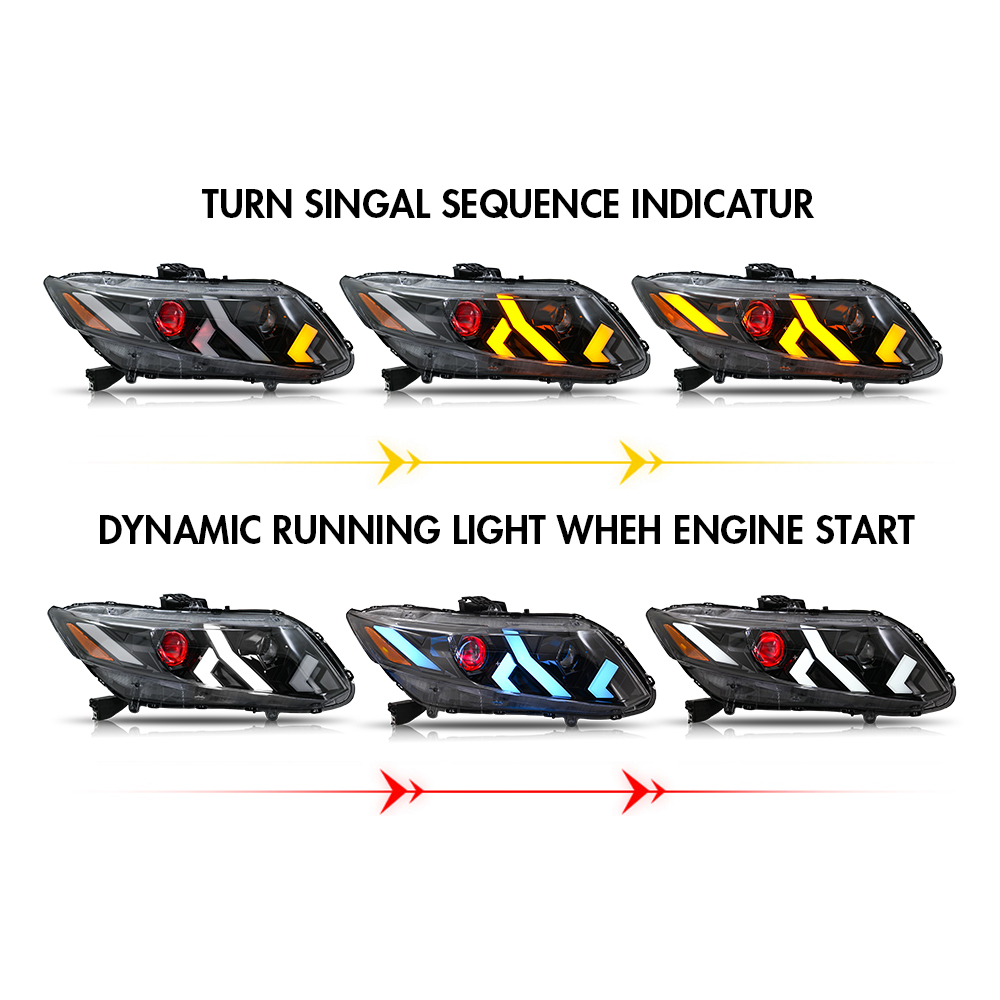 LED Projector Headlights For 2012-2015 Honda Civic 2/4Dr Head Lamp Assembly Pair