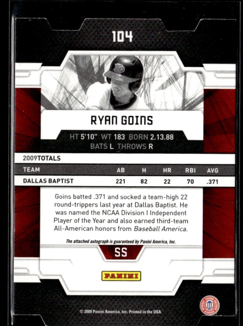 | Ryan Goins 2009 Donruss Elite Extra Edition Aspirations Blue Auto /100 #104 |