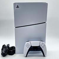 Sony PlayStation 5 Slim Digital PS5 1TB White Console Gaming System CFI-2015 Items included in this sale: Sony PlayStation 5 Slim Digital Edition PS5 1TB White Console Gaming System CFI-2015 HDMI Cable Power Cable USB-C Cable Controller Sorry, no box or anything else included *Please note, if it is not listed it is not included - such as power cables or other accessories. Specifications: Collection Sony Gaming Sub-Collection Sony Consoles Brand Sony Model PlayStation 5 Slim Digital Edition PS5 Platform Sony PlayStation 5 MPN CFI-2015 Storage Capacity 1TB Condition Fair Type Console Gaming System MFG Warranty? No Software Version Latest Color White Has a Disc Drive No UPC 711719573418 Serial# E43C011X4910932375 Cosmetic condition: The console is in good pre-owned condition with a few noticeable scuffs, scratches, and wear. The top of the console is in good shape with a few minor, but noticeable, marks. The bottom of the console is in good shape with some minor, but noticeable, scuffs and wear. See pictures for more details on condition. Please view our close up photos, as these are taken of the actual item being offered for sale. Functionality condition: The console turns on and off properly, All ports work properly and are clean. This system was successfully connected to wifi. The system connects to the Playstation Network properly. The system updates properly with no issues. The device has been reset and all accounts have been removed. The system hard drive works properly, games and apps can be downloaded properly.