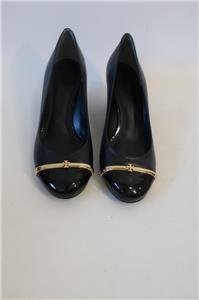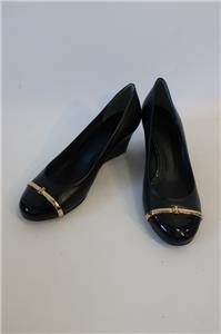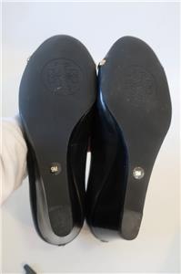- Authentic Womens Tory Burch Pacey Black Leather Wedge Heel Pumps Shoes 9