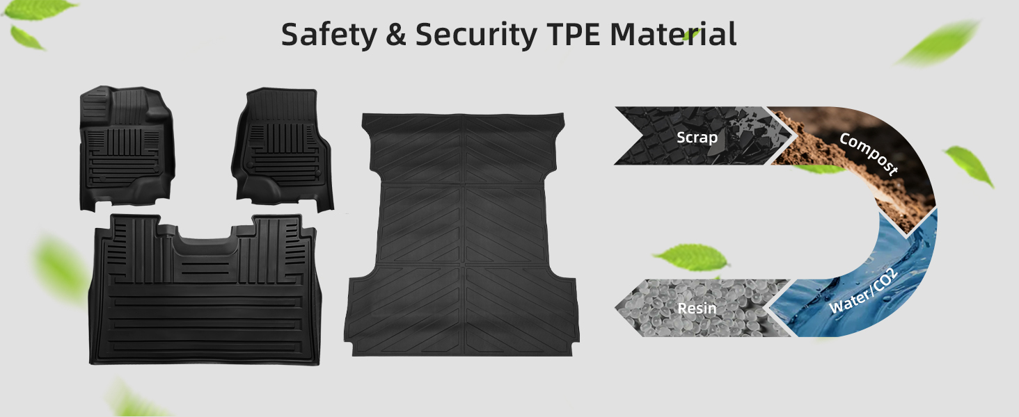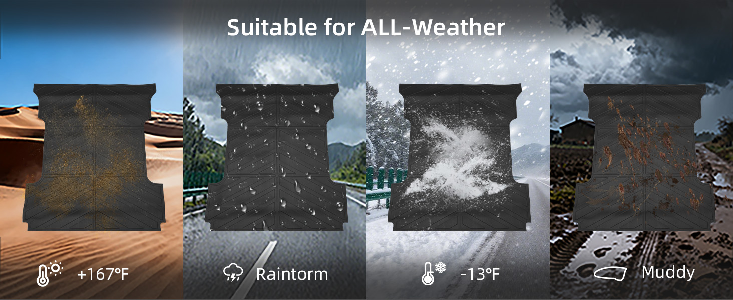 Premium Materials:The truck bed mat is made of high quality TPE material, which is scratch-resistant, durable, and have no bad smell. Our bed liner can withstand all kinds of extreme weather, such as heavy rain or snowstorm days, etc.