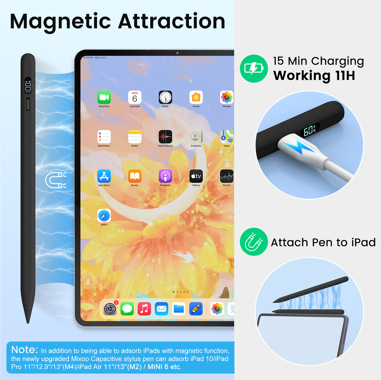 Über diesen Artikel 🔥100 % kompatibel: Dieser iPad-Stift ist mit iPads von 2018 bis 2025 kompatibel, einschließlich des neuesten iPad 11, Air 11"/13" (M3), Pro 11"/12,9"/13" (M4) der 3./4./5./6. Generation, iPad Pro 11" der 1./2./3./4. Generation, iPad Air 11"/13" (M2) der 3./4./5./6. Generation, iPad der 6./7./8./9./10. Generation und iPad Mini der 5./6./7. Generation. Bitte überprüfen Sie Ihr iPad-Modell auf der Rückseite! 🔥Komplett verbessert: Der iPad Pencil bietet jetzt 3-faches Schnellladen und eine Anzeige des verbleibenden Akkustands. Während Sie eine Tasse Kaffee genießen, ist Ihr Stift vollständig aufgeladen. So können Sie bis zu 11 Stunden lang ununterbrochen kreativ sein. Ob Sie während eines Meetings oder unterwegs dringend Änderungen an Ihrem Design vornehmen müssen – dieser Stift ist die beste Wahl! 🔥 Kein Bluetooth erforderlich: Dieser Tablet-Stift ist eine preisgünstige Alternative zum Apple Pencil. Einfach den oberen Knopf drücken und los geht's. Sie müssen nicht die komplizierte Einstellungs-App aufrufen. Hinweis: Falls der Stift sich einschalten lässt, aber nicht funktioniert, trennen Sie die Bluetooth-Verbindung zwischen Ihrem iPad und Apple Pencil wie folgt: Einstellungen > Bluetooth > Apple Pencil > Tippen Sie auf das „i“ > Dieses Gerät ignorieren. 🔥 Handballenerkennung/Neigungsempfindlichkeit/Magnetische Haftung: Beim Schreiben können Sie Ihre Handfläche auf dem iPad ablegen, ohne dass Ihre Arbeit gestört wird! Die Linienstärke lässt sich in jedem Winkel anpassen (15°, 20°, 35°, 175° usw.). Im Vergleich zum 2024-Stift wurden 6 zusätzliche Magnete integriert. Verfügt Ihr iPad über eine magnetische Befestigungsfunktion, haftet der Stift sicher.