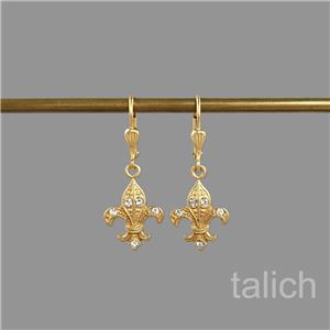 La Vie Parisienne Catherine Popesco Fleur De Lis Drop Earrings with Clear Swarovski Crystals