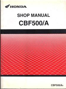 PUBLISHED BY THE HONDA MOTOR CO.LTD.THIS IS A SHOP MANUAL (WORKSHOP MANUAL) FOR THE HONDA CBF500 & CBF500A MADE IN 2004 (PART NUMBER 62MET00 ENGLISH LANGUAGE EDITION).IT COVERS ALL UK & EUROPEAN CBF500 MODELS FITTED WITH 500 (499cc,30.4cu in) DOHC TWIN CYLINDER ENGINES.DATED MARCH 2004 THE MODELS COVERED BY THIS MANUAL ARE THE 2004 HONDA CBF500 (CBF5004) & CBF500A (CBF500A4 WITH ABS) AND WIIL BE OF USE IF YOU OWN A LATER MODEL CBF500 OR CBF500A.THIS IS THE FULL HONDA CBF500 WORKSHOP MANUAL YOUR LOCAL HONDA DEALER WOULD HAVE USED TO SERVICE, REPAIR, TUNE, SETUP, FAULT FIND AND REBUILD YOUR HONDA CBF500 BACK IN 2004.VERY USEFUL IF ARE SERVICING, REPAIRING,RESTORING OR OWN A HONDA CBF500 OR CBF500A.