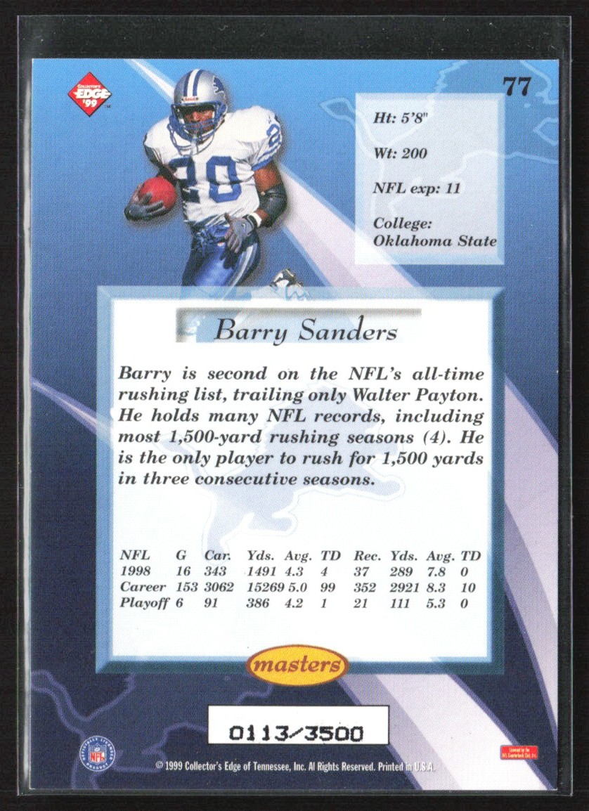 | Barry Sanders 1999 Collector's Edge Masters HoloSilver /3500 #77 Detroit Lions |