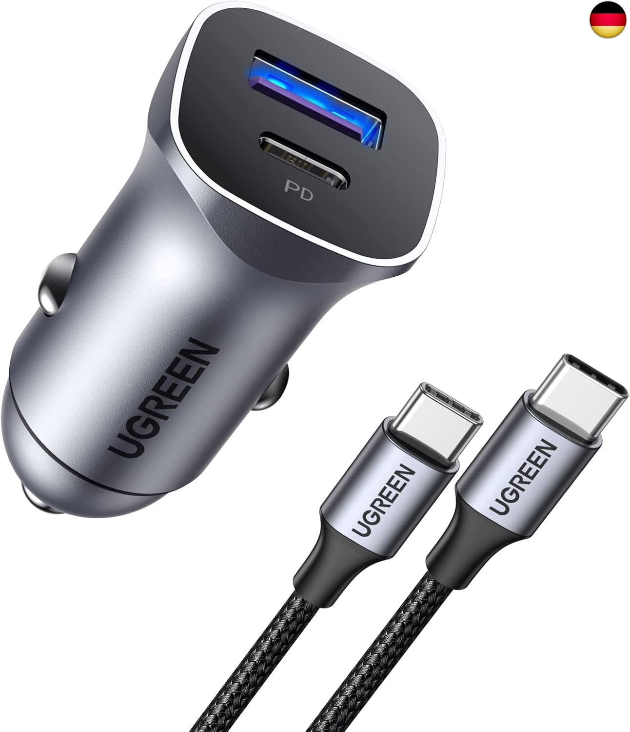 UGREEN Zigarettenanzünder USB C 30W Auto Ladegerät PD&QC 3.0 KFZ Ladegerät USB C PPS mit 1m USB-C Kabel kompatibel mit iPhone 14, 14 Pro, 14 Pro Max, 13, 12, 11, iPad Pro, Galaxy S22, S21, A53 usw.