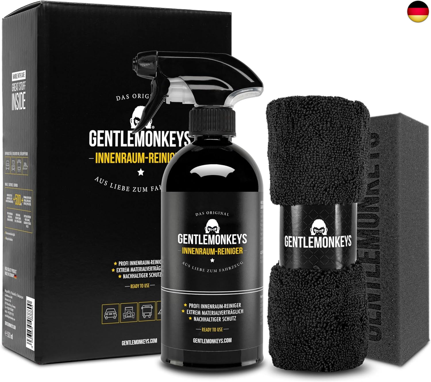 GENTLEMONKEYS Profi Innenraumreiniger Set Auto (500ml + Mikrofasertuch & Schwamm) ? Porentiefe Reinigung aller im Fahrzeug verbauten Materialien ? Universell einsetzbar ? Biologisch abbaubar