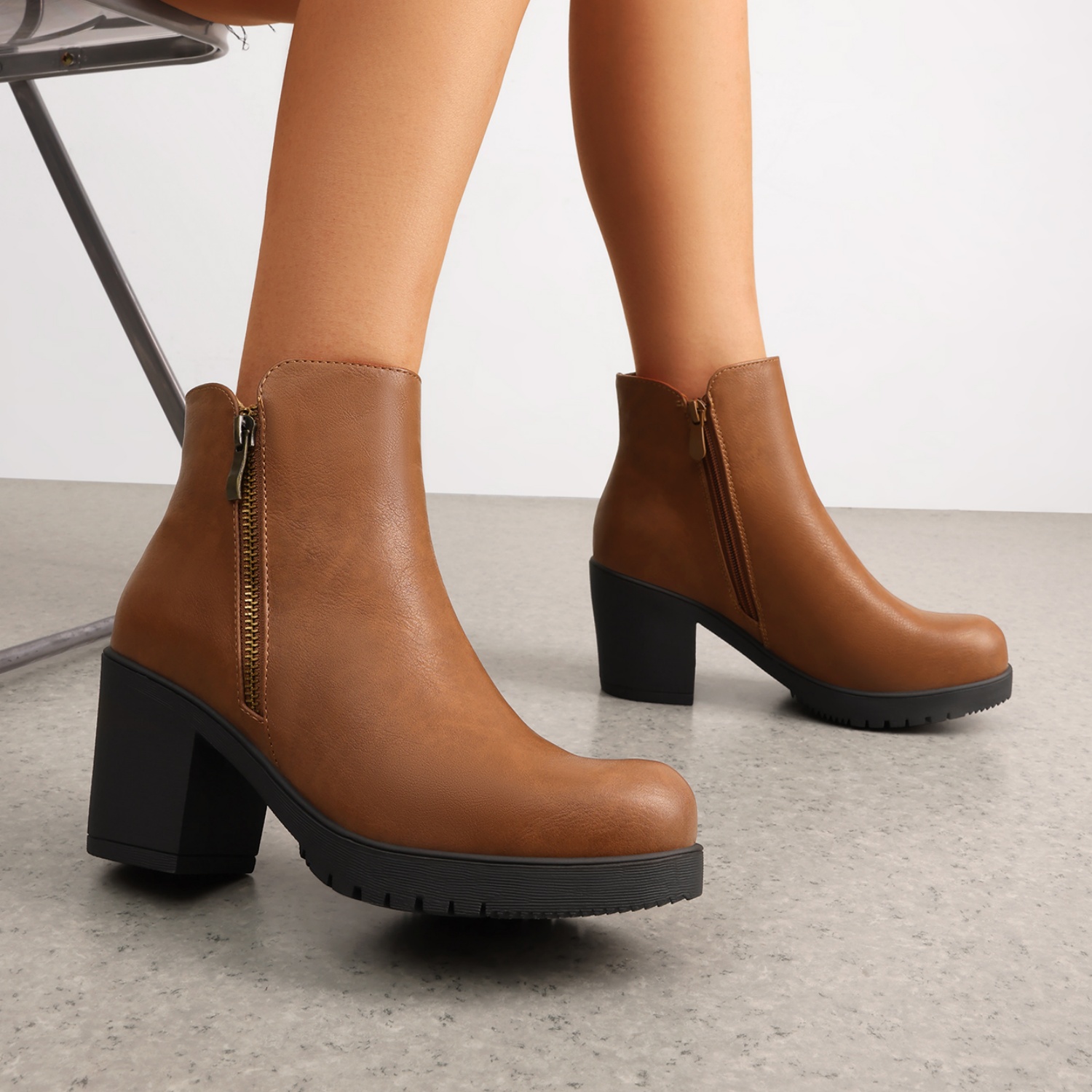 Chic Design: Soft vegan leather upper with a stylish outside zipper adds a modern touch to any outfit.