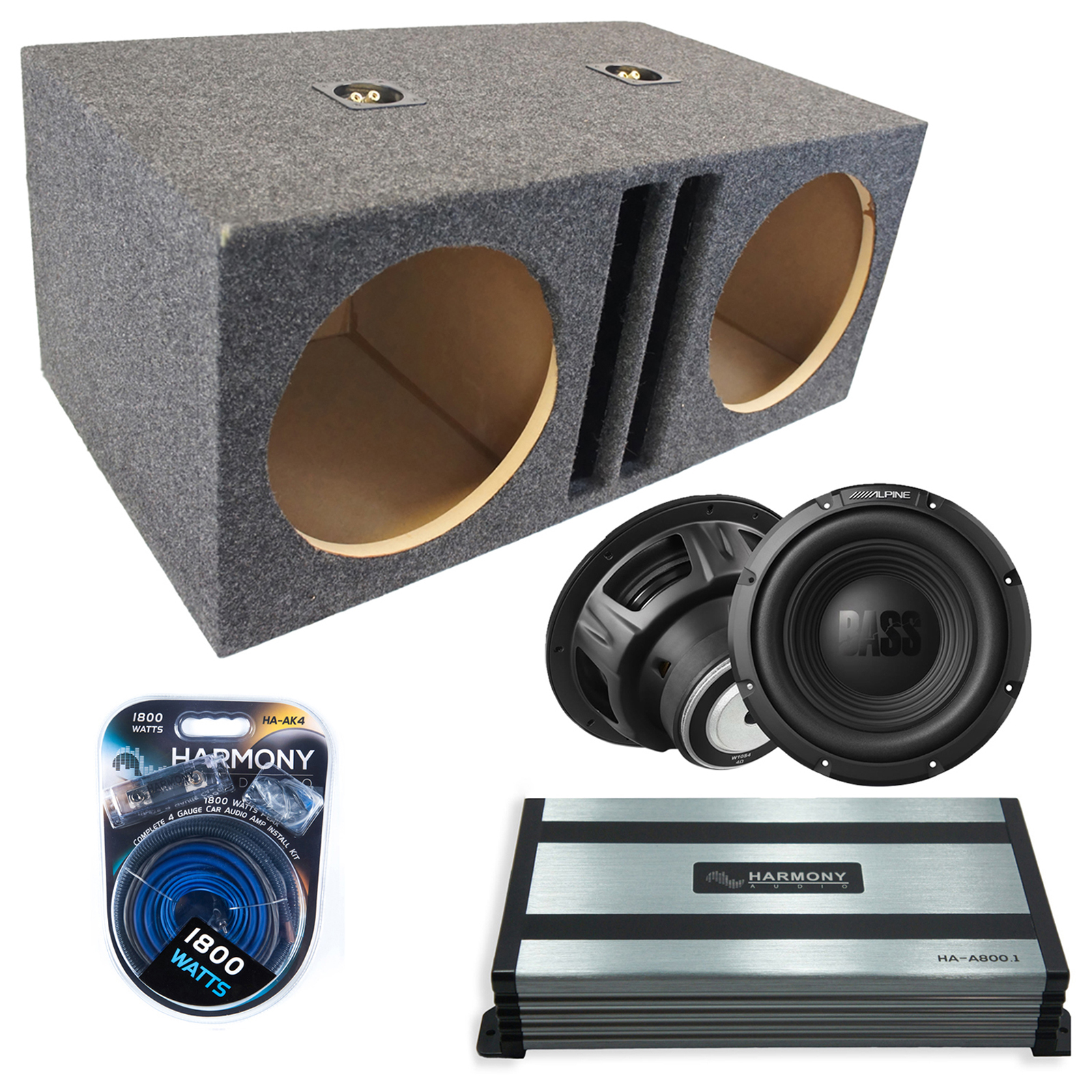 Alpine W10S4 10" Loaded Subwoofer Bundle Labyrinth Vent Sub Box w/ Amp
