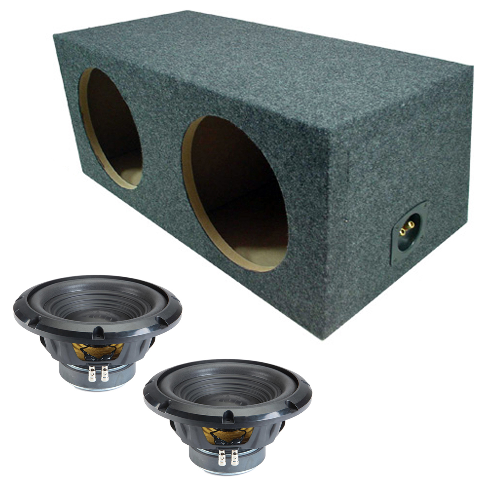 Wrapped in high-quality gray carpet to match most interiors, the enclosure features spring-loaded terminal cups for secure, easy wiring. Whether you're upgrading your car stereo or building a powerful bass system, this bundled subwoofer and enclosure combo is designed to deliver performance and style in one loaded package.