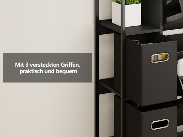 • Drei Schubladen: Dieser Schuhschrank bietet drei offene Regalfächer. Jedes Fach enthält eine herausnehmbare Stoffschublade. Flexibler Stauraum für Ihre wichtigsten Alltagsgegenstände.