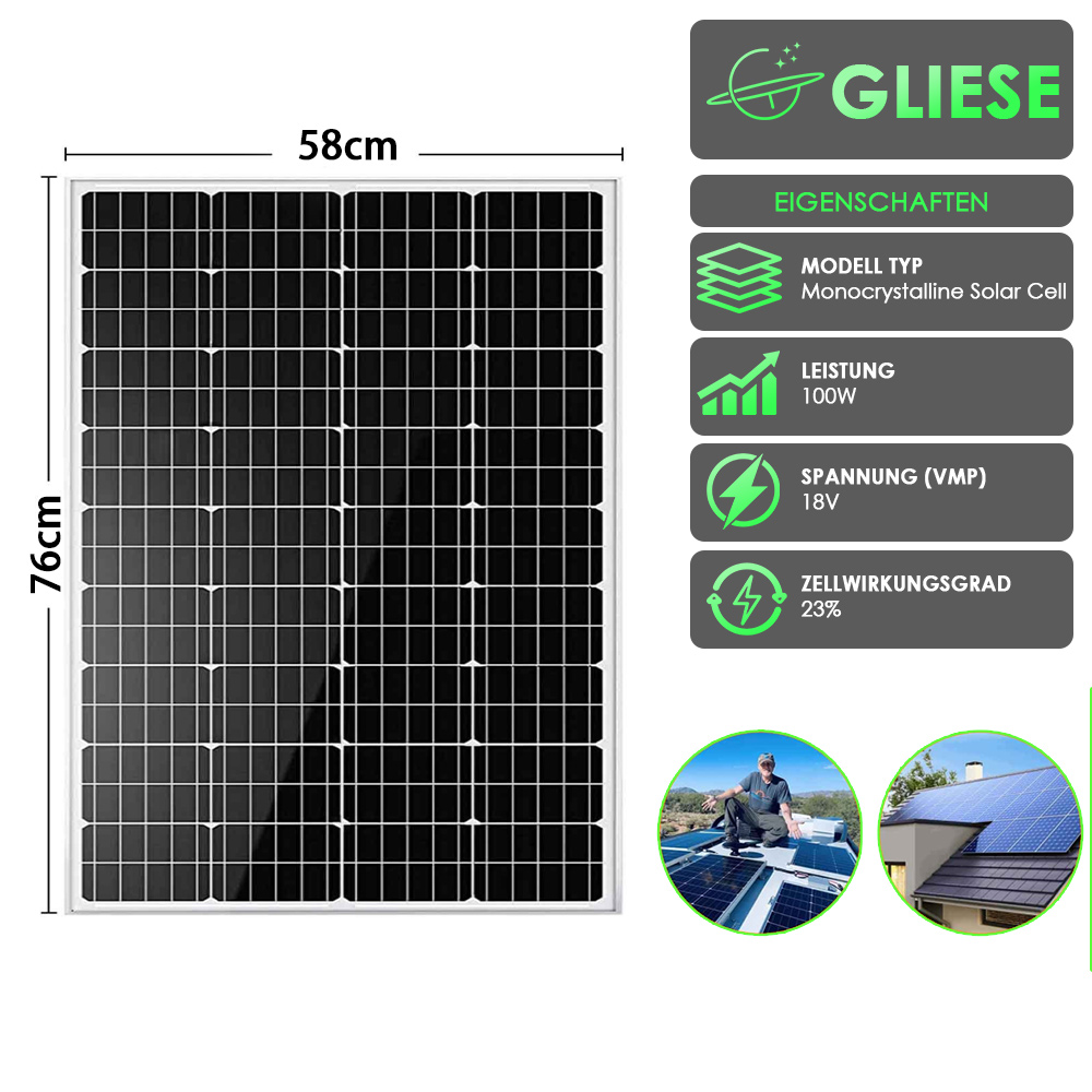 200W Solarpanel Kit Solarmodul Monokristalline Photovoltaik für Wohnmobil Balkon
