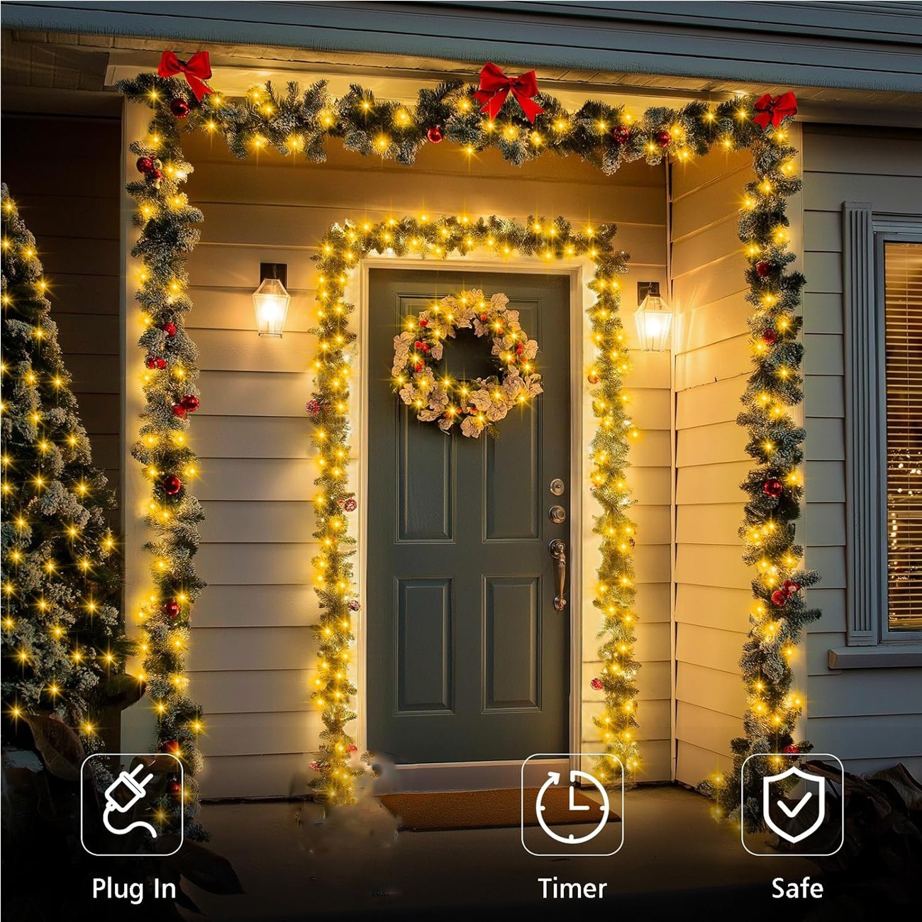 - Safety and Timer:LED christmas lights outdoor adopt 31V low voltage power plug,safe to touch for kids and pets.Made of PVC transparent wire and Low-temp LED beads,It can prevent overheating and prolong the service life.you can also set the usage time of the LED string light through the plug(6 hrs on,18 hrs off)