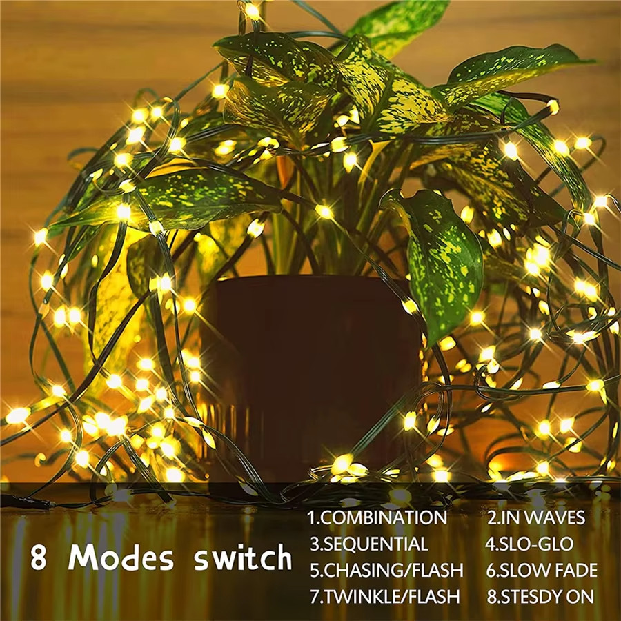 - 8 Light Modes and Memory Munction:Christmas lights has 8 light modes (Combination,In waves,Sequential,Slo-glo,Chasing/flash,Slow fade,Twinkle/flash,Steady on) You can choose your favorite mode according to different occasions and moods to create a unique festive atmosphere. And the christmas lights outdoor has a memory function,which can automatically save the last light mode. Make your Christmas decoration easier