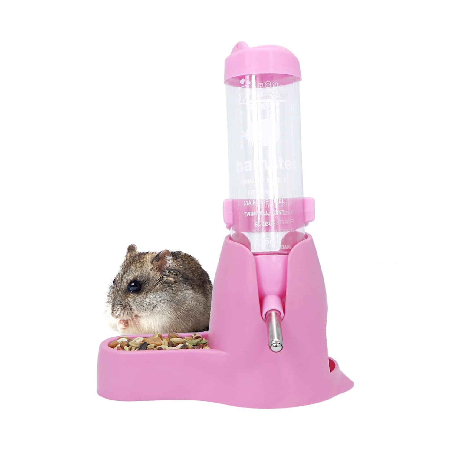 3 in 1 Hamster Hanging Water Bottle Pet Auto Dispenser with Base for Dwarf Hamster Mouse Rat Hedgehog (125ML, Pink)