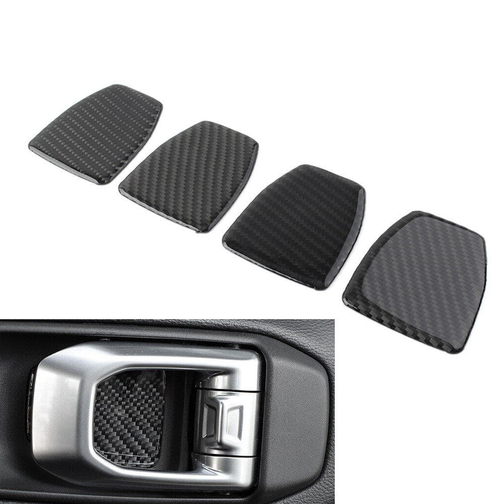 4 Pcs Interior Door Handle Bowl Cover Trim For Jeep Wrangler JL 2018-2021 Specification: Condition: 100% Brand New Material: Carbon Fiber (Soft) + Epoxy Coating Color: Black Fitment Type: Direct Replacement Placement on Vehicle: Front Door, Rear Door, Left, Right Fitment: Fit for Jeep Wrangler JL 2018-2021 Please check whether this item can fit on your car before purchasing. Features: 1. Waterproof, durable, high temperature resistance. 2. Easy Installation with tape attached on the back and you shouldn't need any specialty tools. 3. Made of high-quality material and epoxy coating with nice textures in looking and touching. 4. It will decorate your car in a unique and fashion way. And the covers prevent the surface of your car from scratches, dust, keeping it new. Packing Included: 4 Pcs/Set Method Of Installation: Step 1 Please clean the area and eliminates the substance before mounting this product. Step 2 To check the installation area according to the vehicle with this product first and then release the back of tape paper is removed. Step 3 Products are equipped on the vehicle with exactly and use a clean cloth to press evenly is attached. Step 4 Products within 24 hours after installed, please avoid washing your car and touching the water. Before installation, Please keep the surface clean and dry, no sand/dust. Under 15 ℃, you can use a Hair dryer to warm the product and adhesive tapes up before installation. Notes: 1. All dimensions are measured by hand, there may be small deviations. 2. No installation instruction included, professional installation is highly recommended. 3. Due to the lighting and screen settings, the real color may slightly different from the picture.