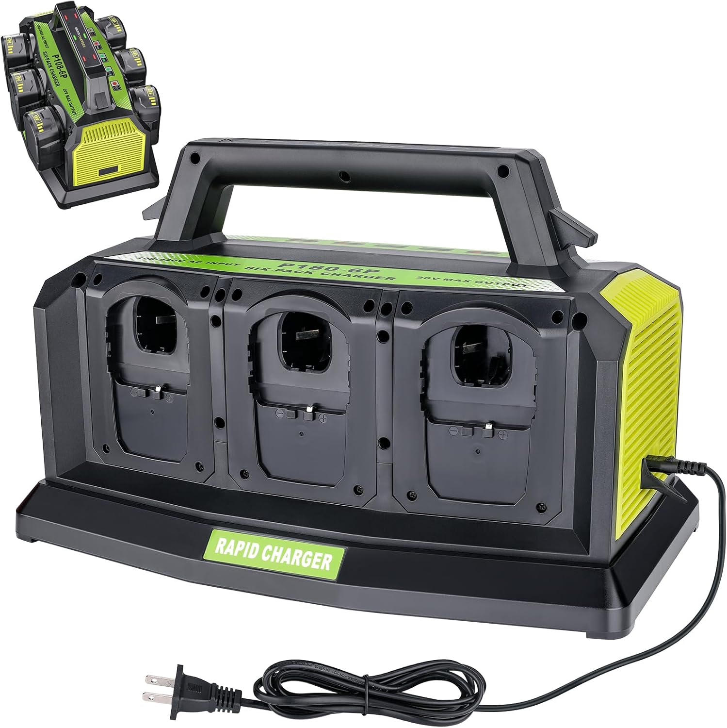 【 Simultaneous Charger 6-Ports for Ryobi 18V Battery 】 P180-6 Ports Rapid Charger Replacement for Ryobi 18v battery, P135 18V Six-Pack Lithium-Ion Charger. Replacement for Ryobi Battery P135 P117 18V charger,charger Compatible with Ryobi all 18v Battery . 100% Compatible with Ryobi 18V battery P102 P104 P105 P106 P108 P107 P109,PBP005 PBP006 etc.Work Compatible with Ryobi All 18V lithium ion batteries.