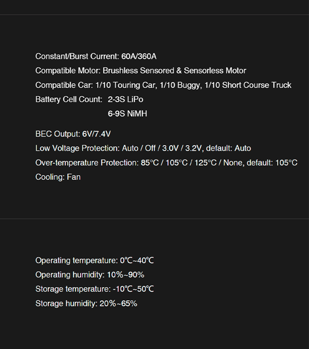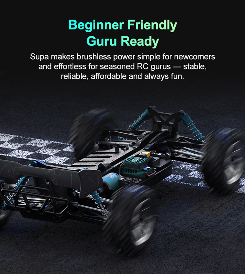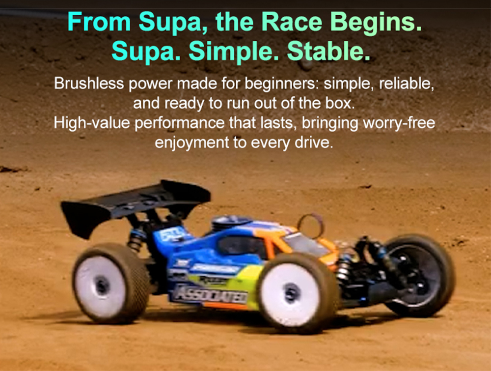 The Supa 60A ESC and 3650 brushless motor come together in one seamless combo delivering a smooth and effortless entry into the brushless world.Simple to use, stable in performance from your very first lap to every race ahead you'll experience the thrill of speed with ease.