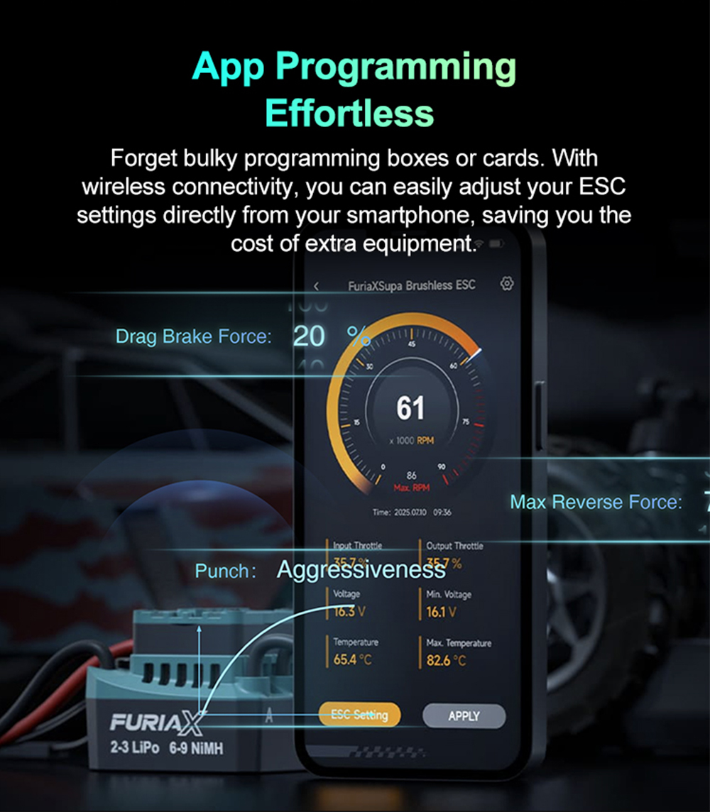 2. With wireless connectivity, you can easily adjust your ESC settings directly from your smartphone.