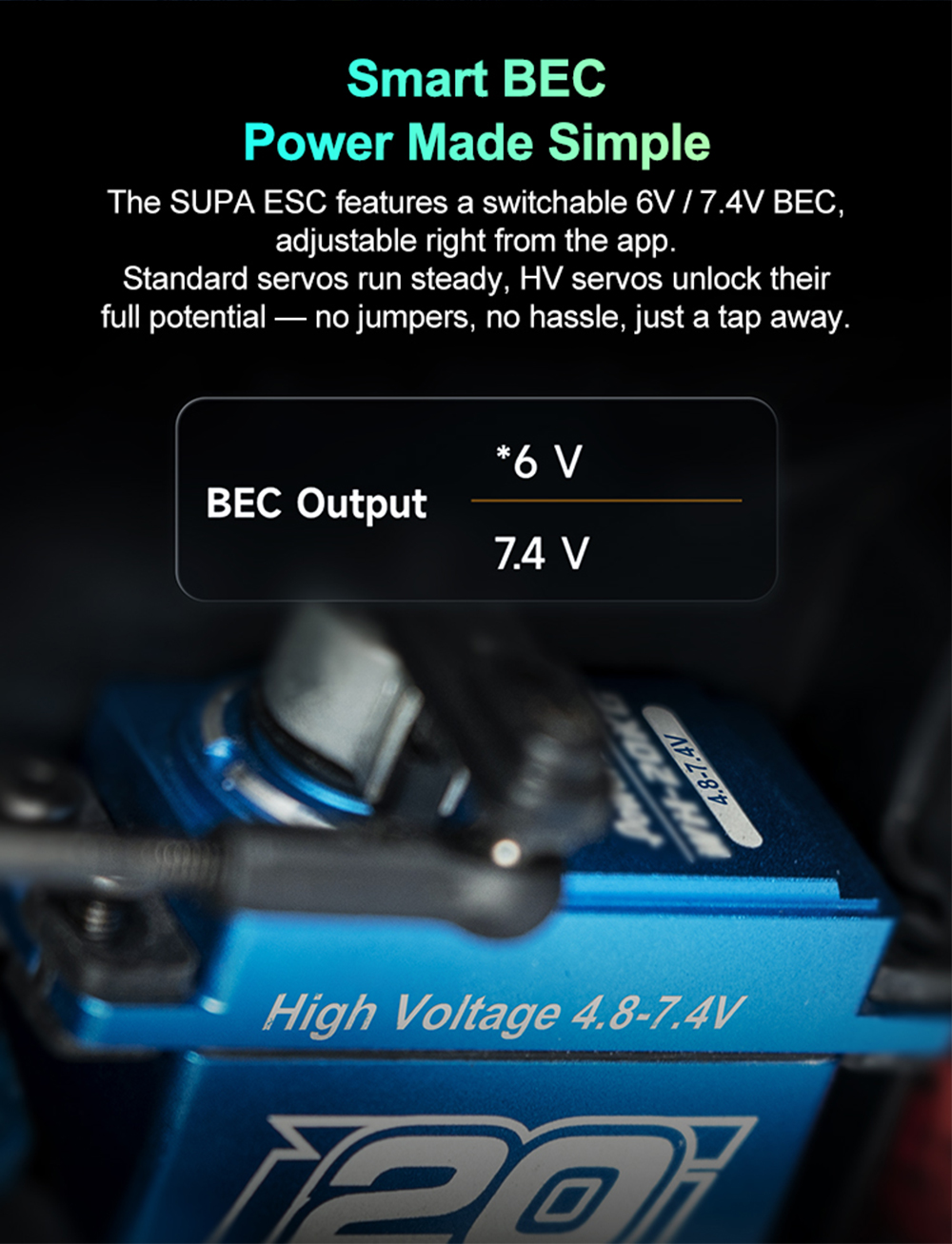 4. ESC features a switchable 6V/7.4V BECadjustable right from the app.