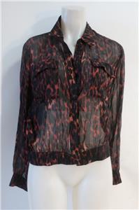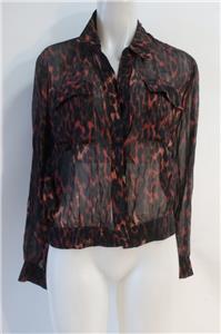 Womens Allsaints "Adeliza" Black, Brown Leopard Button Down Blouse M