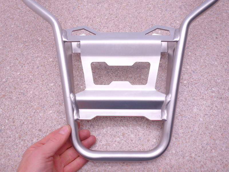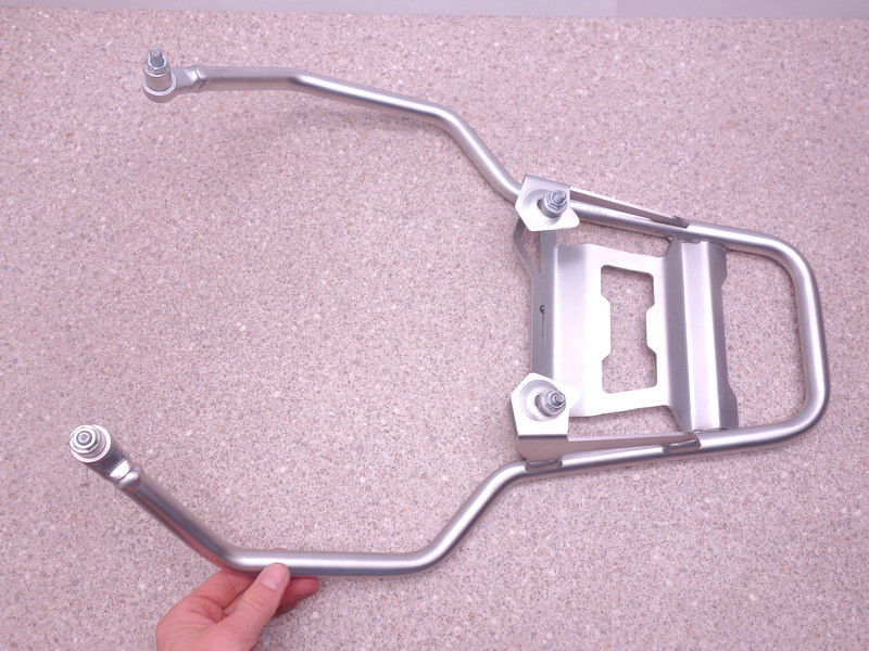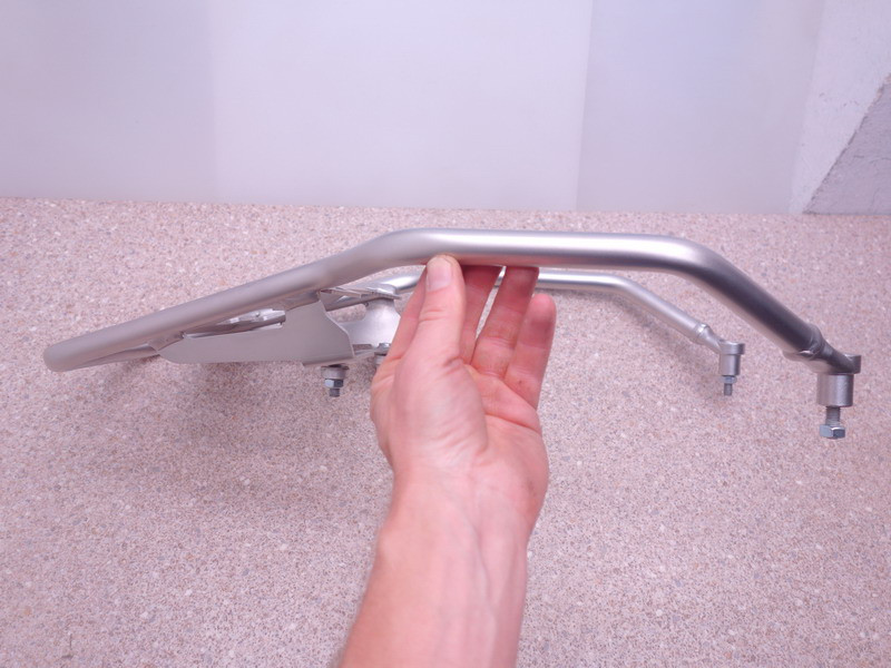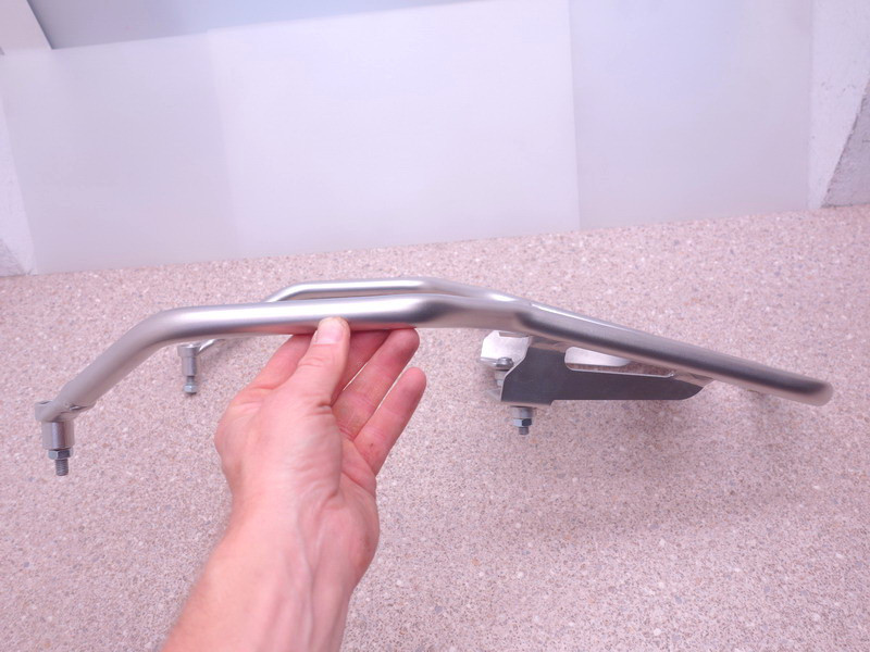 Hintere Edelstahl-Gepäckbrücke (Gepäckträger, Topcase-Halter) inkl. Sozius-Haltegriffe.