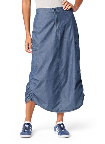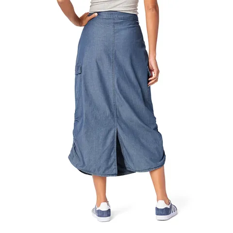 Experience the perfect blend of style and comfort with the Levi Strauss Signature Women's Parachute Cargo Skirt. This skirt is designed with a mid-rise fit that flatters the waist while providing a relaxed silhouette that hits at mid-calf length, offering a modern twist on classic skirt styles. Made from a lightweight and breathable fabric composed of 85% cotton and 15% polyester, it ensures all-day comfort and durability. The standout cargo pockets add both functionality and an edgy aesthetic, ideal for carrying essentials hands-free. Ruching details along the sides enhance the skirt's visual appeal by adding texture and shape, making it a versatile piece that can be dressed up or down. Its machine washable fabric makes maintenance simple, allowing you to enjoy this fashionable piece without hassle. Whether paired with casual tops or dressier blouses, this skirt is a must-have addition to any wardrobe seeking both utility and trend-forward design.