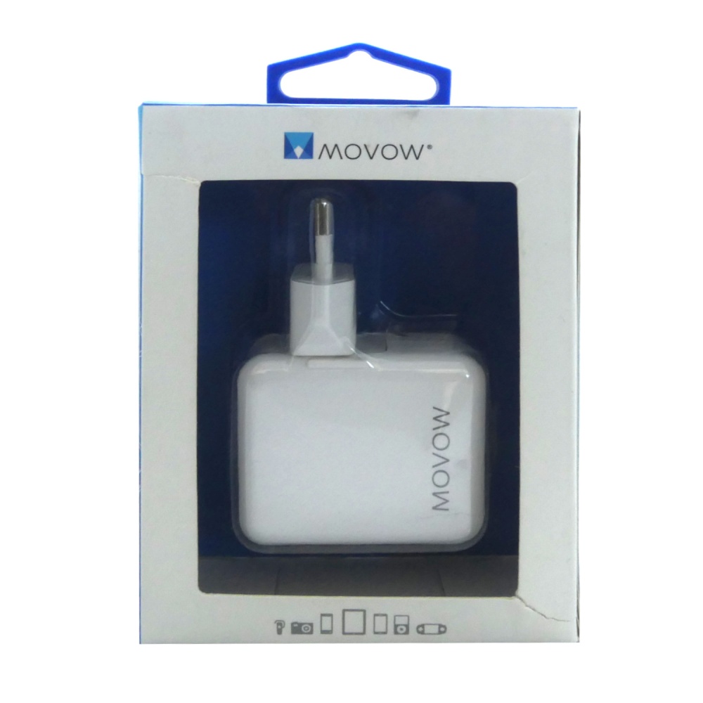 Chargeur mural d'origine Movow 2x ports USB blanc Les caractéristiques: Couleur blanche 2 ports USB Entrée : 100V - 240V Sortie : 5 V / 3,1 A Port USB 1 : 5 V / 2,1 A Port USB 2 : 5V / 1A