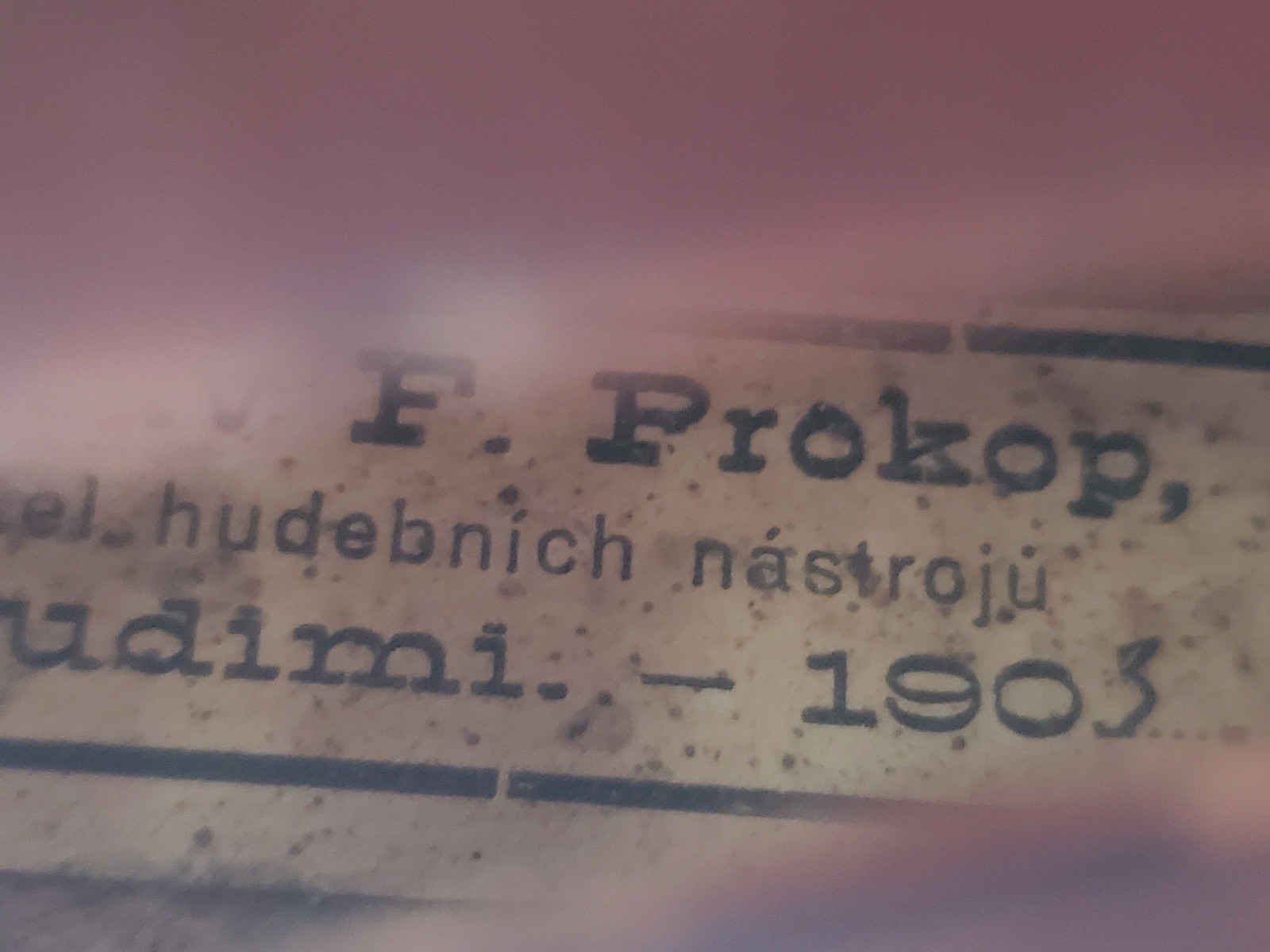 Nice and old 4/4 violin.The label reads "Ladislav F. Prokop ...Chrudimi 1905" (the year is not clearly to read) . The back is deeply flamed. There is a thin crack at the front. The Instrument may need some repair, service and cleaning. The length is 59 cm/23 1/4inch. The body is 36 cm (14 1/8 inch). If you have any questions, please ask. Insured shipping to USA or Canada amounts to 59 USD. Please also view my other auctions with instruments. Shipping several violins saves shippingfees. (No additional shippingfee for a 2nd violin to ship with!) ---------------------------------------------------------------------------------------------------------------------------------