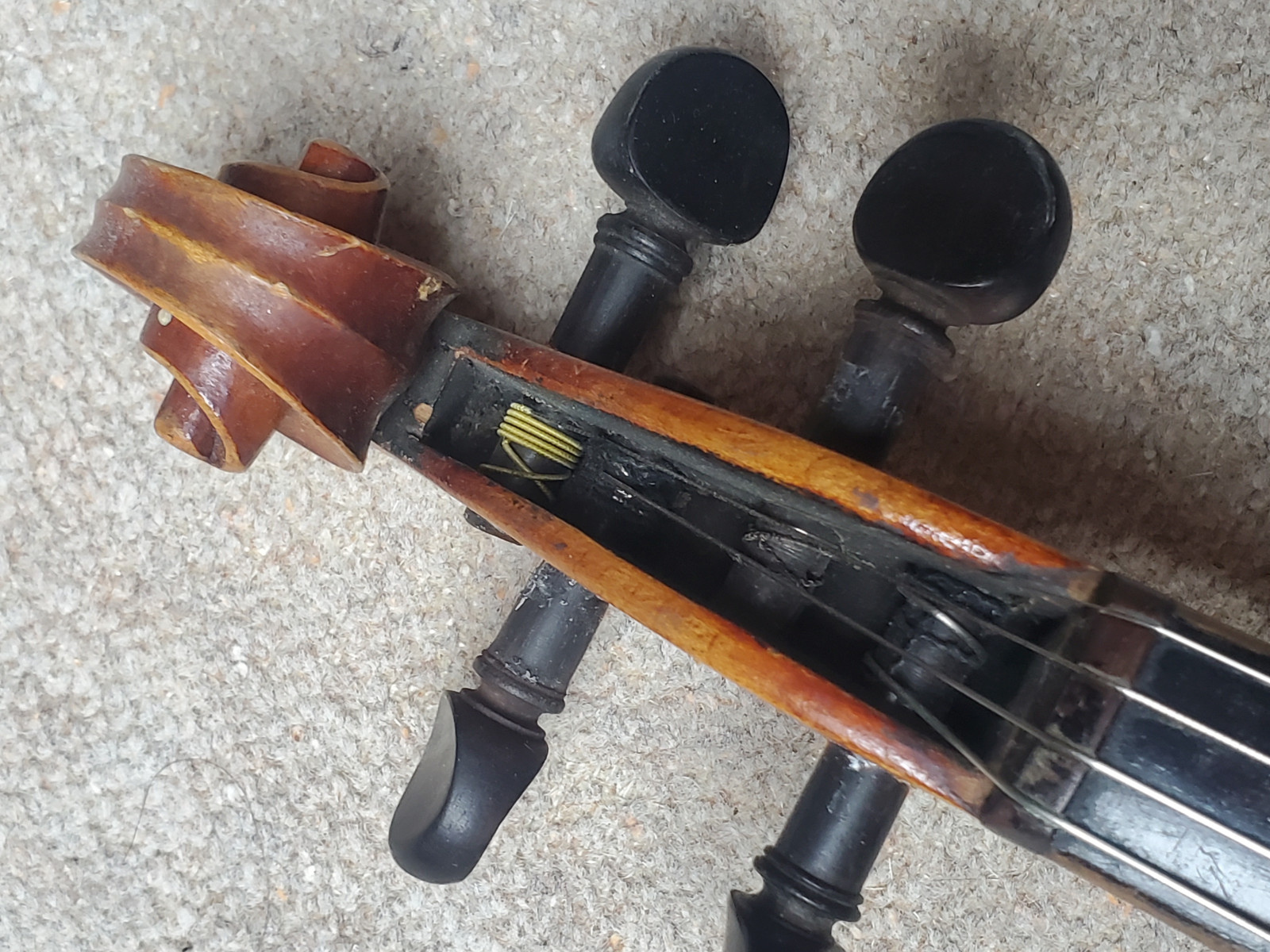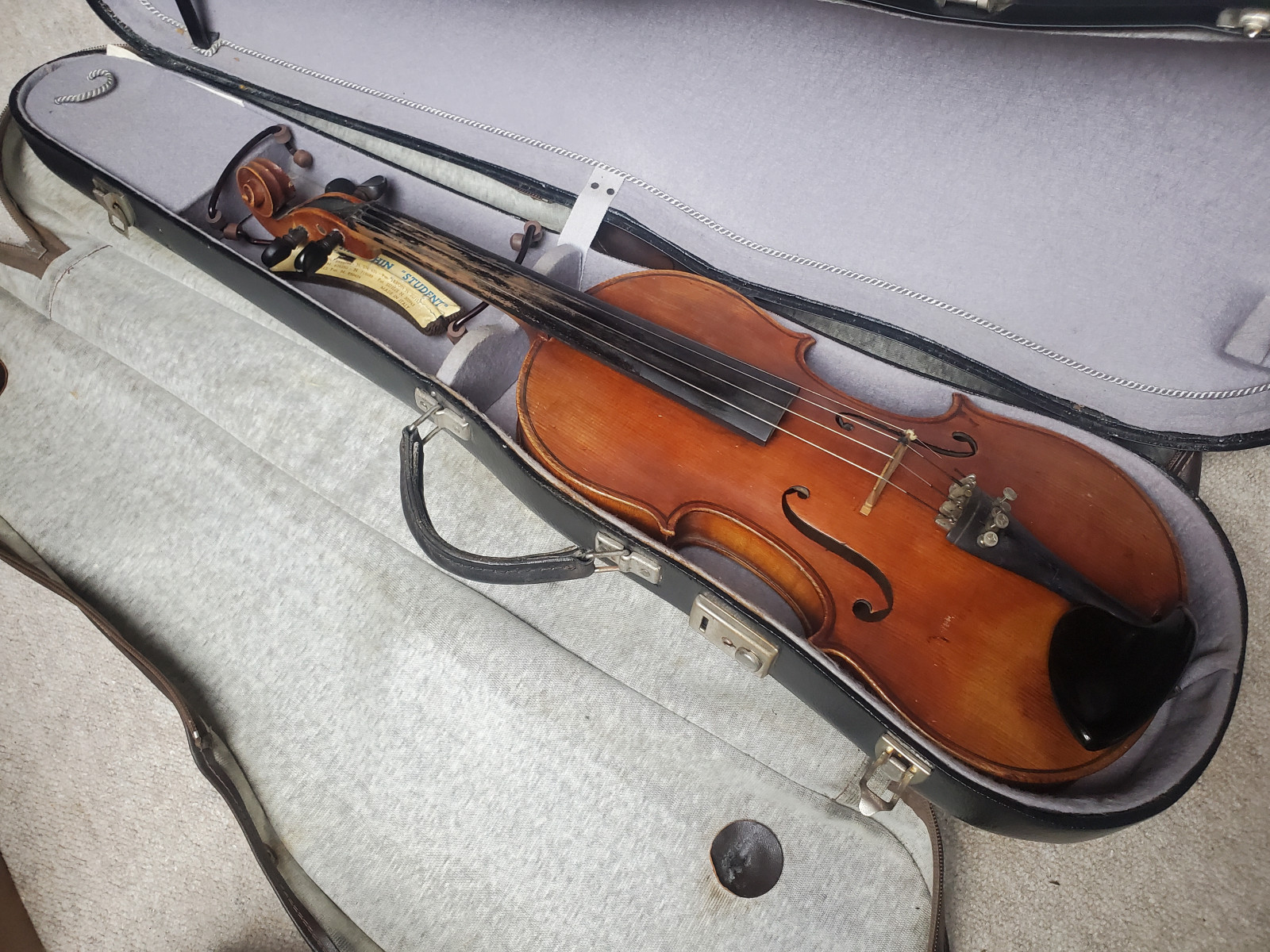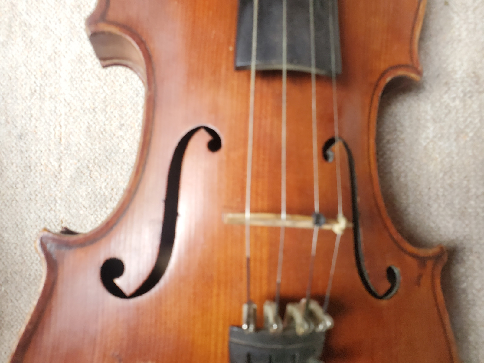 Nicel old 4/4 violin. No label inside. No cracks. The length of the violin is 58,8cm/ 23 1/8 inch. The body is 35,7cm (14 1/16 inch). Instrument needs cleaning and service. If you have any questions, please ask. Insured shipping to USA or Canada amounts to 59 USD. I will ship worldwide! Please also view my other auctions with instruments. Shipping several violins saves shippingfees. Please see my other auctions with string-, woodwind- and brass instruments .