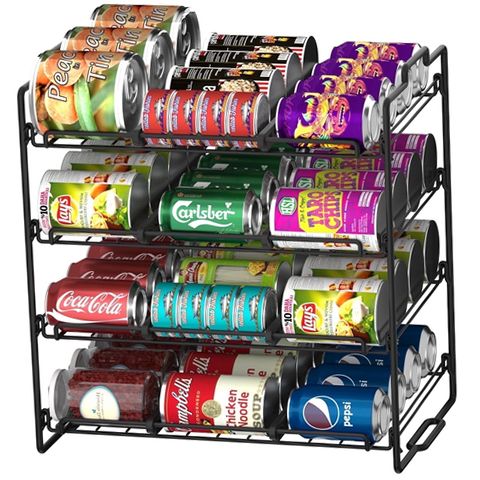 [stusgo 4 Tiers Stackable Can Rack Organizer Wear-Resistant Upgrade Beverage Food Can Dispenser Holder Holds up to 48 Cans for Kitchen Cabinet and Pantry (Black) ?Are you still frustrated by cluttered countertops and scattered cans?? ?Our newly upgraded Stusgo oversized can organizer is designed with durable materials and offers plenty of space for soda cans soup cans pet food cans and more.? ?A well-designed kitchen can rack keeps your countertops organized prevents rust and keeps your kitchen space clean and efficient.?]