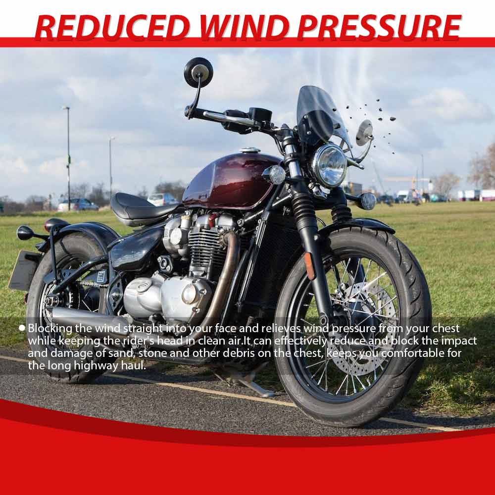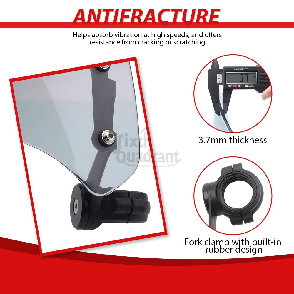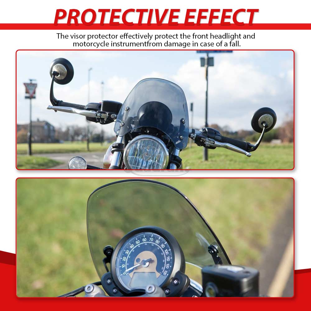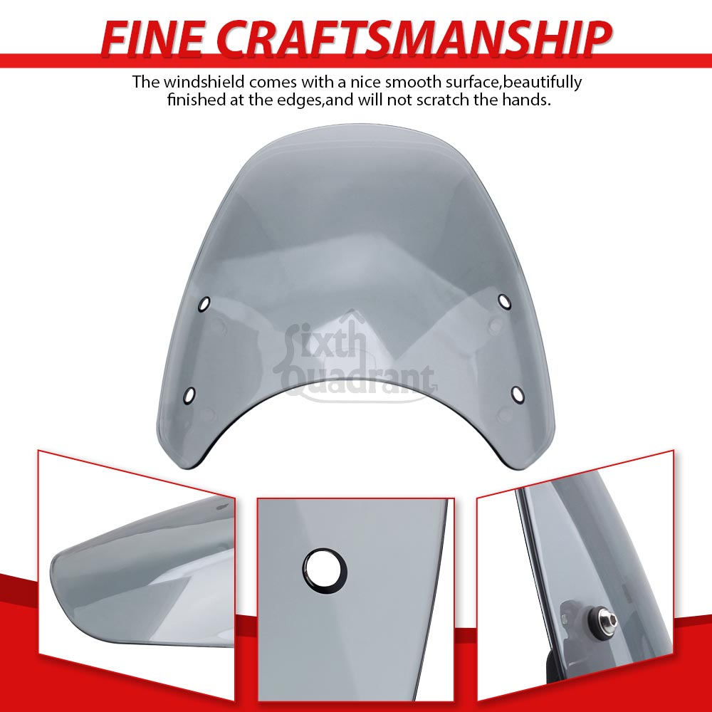 Specification: Condition:Brand new. Item Type: Motorcycle Windscreens/Wind Deflectors/Wind Splitter . Material: Aluminum bracket + polycarbonate Plastic windscreen +Plastic fork clamp Size:As the picture show. Style: Custom parts Color: Light Smoke Feature: 1.Blocking the wind straight into your face and relieves wind pressure from your chest while keeping the rider's head in clean air.It can effectively reduce and block the impact and damage of sand, stone and other debris on the chest, keeps you comfortable for the long highway haul. 2.The excellent quality item, made of durable polycarbonate flyscreen + High strength Aluminum bracket, which is tends to be more durable, abrasion resistant and unbreakable,providing high impact strength and stability. 3.Fashion-design improve the overall appearance of your bike, to give your motorbike a new look,makes it outstanding and unique!! 4.Extra 3.7mm thickness and fork clamp with built-in rubber design,helps absorb vibration at high speeds, and offers resistance from cracking or scratching. 5.Fine workmanship, the windshield comes with a nice smooth surface,beautifully finished at the edges,and will not scratch the hands. 6.The visor protector effectively protect the front headlight and motorcycle instrumentfrom damage in case of a fall. 7.Easy to install,No need drilling,Comes with mounting brackets and installing hardware,this airflow windshield was easy to install.Just need to align the mounting holes, insert the screws and tighten them. Fitment: Fit For Triumph Bonneville Bobber 2017 2018 2019 2020 2021 2022 2023 Note:Item does not fit for Triumph Bobber Black or any dual disc fork Triumph Bobber as the forks are wider and fatter. Package Includes: 1 pcs of Motorcycle Windshield windscreen 1 Set of Brackets (left and right) 1 Set of steel mounting screws Note: Please check the compatible vehicles of the fitment.Instruction is not included! Please allow 0~1 inch error due to manual measurement. Please check the size and fitment before placing an order.Thanks for your understanding.