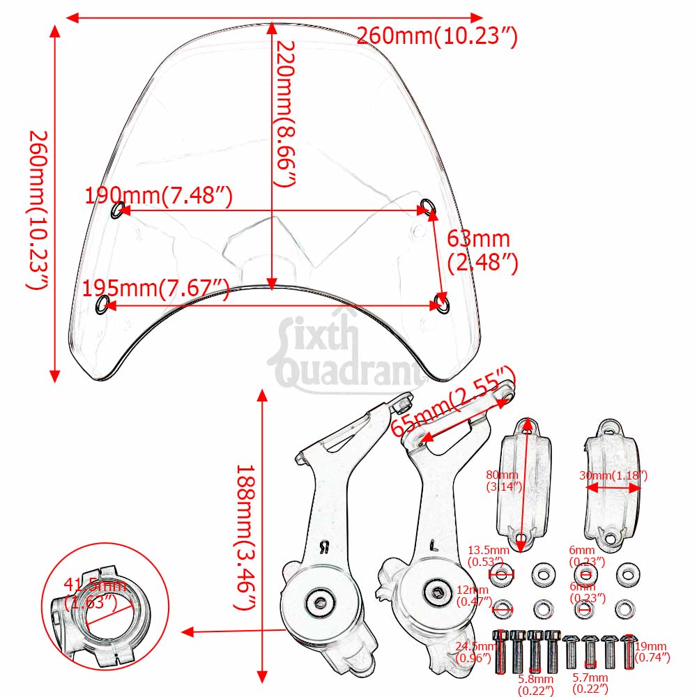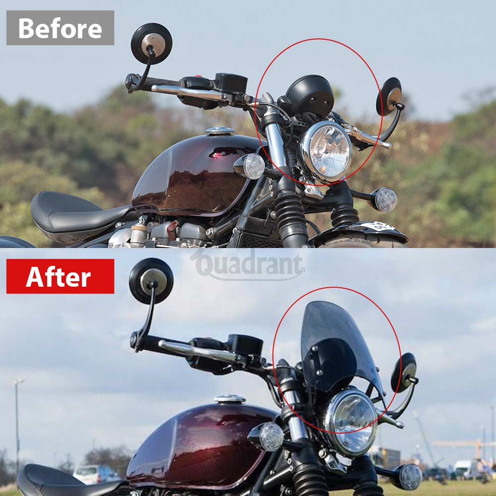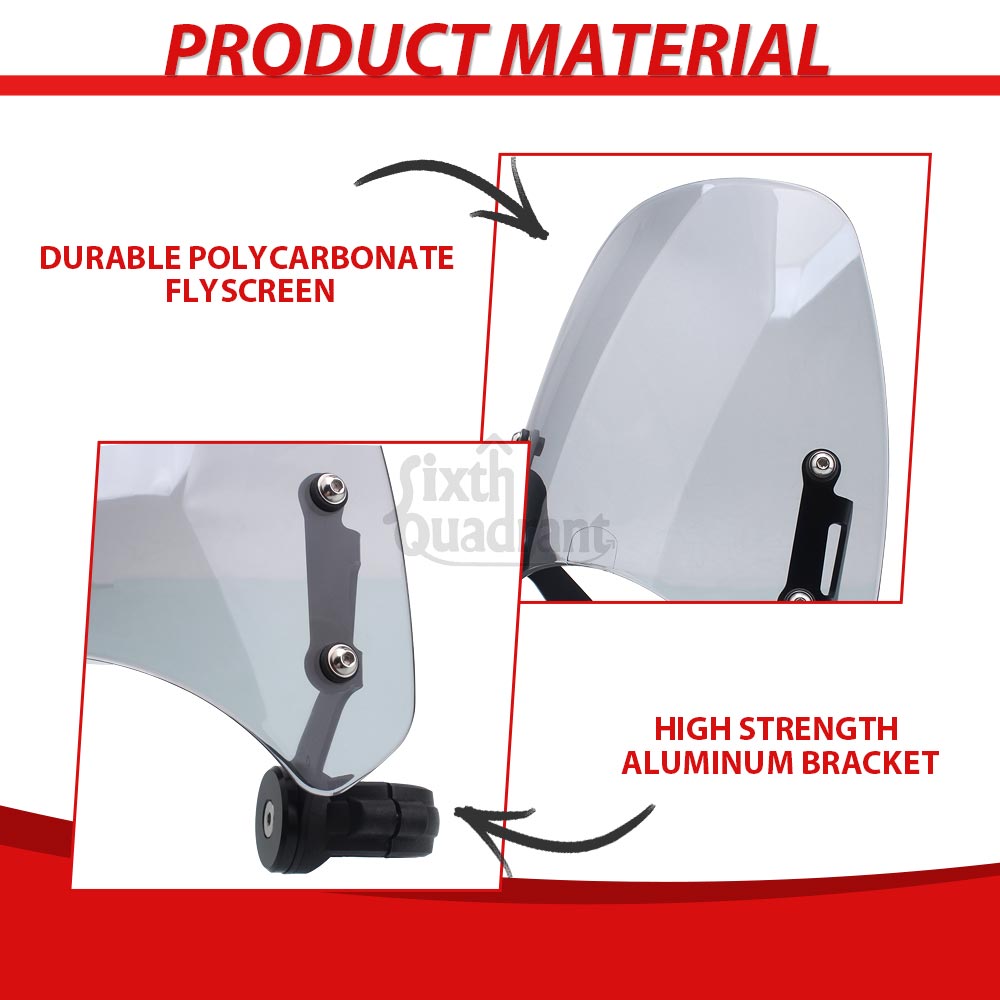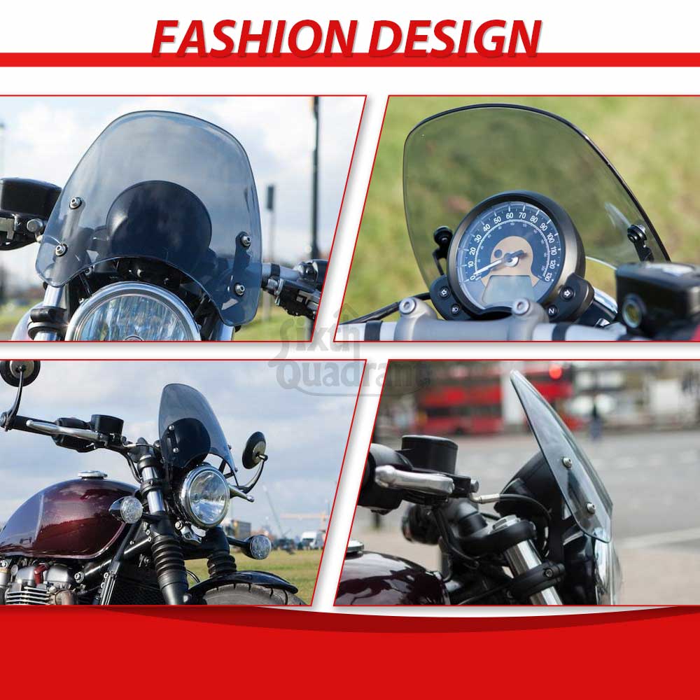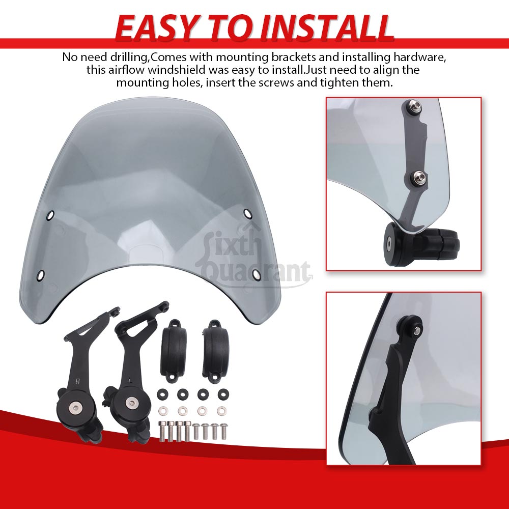 Specification: Condition:Brand new. Item Type: Motorcycle Windscreens/Wind Deflectors/Wind Splitter . Material: Aluminum bracket + polycarbonate Plastic windscreen +Plastic fork clamp Size:As the picture show. Style: Custom parts Color: Light Smoke Feature: 1.Blocking the wind straight into your face and relieves wind pressure from your chest while keeping the rider's head in clean air.It can effectively reduce and block the impact and damage of sand, stone and other debris on the chest, keeps you comfortable for the long highway haul. 2.The excellent quality item, made of durable polycarbonate flyscreen + High strength Aluminum bracket, which is tends to be more durable, abrasion resistant and unbreakable,providing high impact strength and stability. 3.Fashion-design improve the overall appearance of your bike, to give your motorbike a new look,makes it outstanding and unique!! 4.Extra 3.7mm thickness and fork clamp with built-in rubber design,helps absorb vibration at high speeds, and offers resistance from cracking or scratching. 5.Fine workmanship, the windshield comes with a nice smooth surface,beautifully finished at the edges,and will not scratch the hands. 6.The visor protector effectively protect the front headlight and motorcycle instrumentfrom damage in case of a fall. 7.Easy to install,No need drilling,Comes with mounting brackets and installing hardware,this airflow windshield was easy to install.Just need to align the mounting holes, insert the screws and tighten them. Fitment: Fit For Triumph Bonneville Bobber 2017 2018 2019 2020 2021 2022 2023 Note:Item does not fit for Triumph Bobber Black or any dual disc fork Triumph Bobber as the forks are wider and fatter. Package Includes: 1 pcs of Motorcycle Windshield windscreen 1 Set of Brackets (left and right) 1 Set of steel mounting screws Note: Please check the compatible vehicles of the fitment.Instruction is not included! Please allow 0~1 inch error due to manual measurement. Please check the size and fitment before placing an order.Thanks for your understanding.