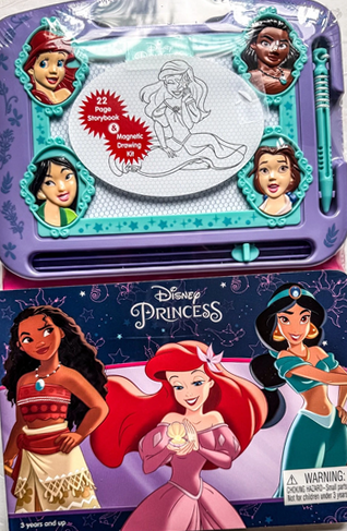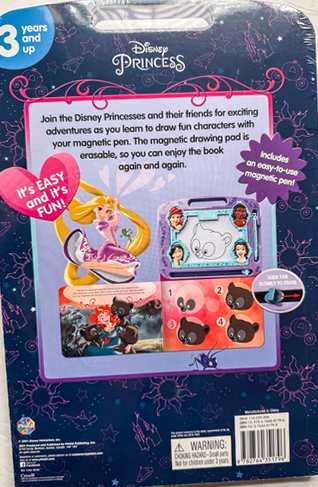 Phidal Inc Disney Princess Storybook & Magnetic Drawing Kit (Board Book) Join the Disney Princesses and their friends for exciting adventures as you learn to draw fun characters with your magnetic pen. The magnetic drawing pad is erasable, so you can enjoy the book again and again.