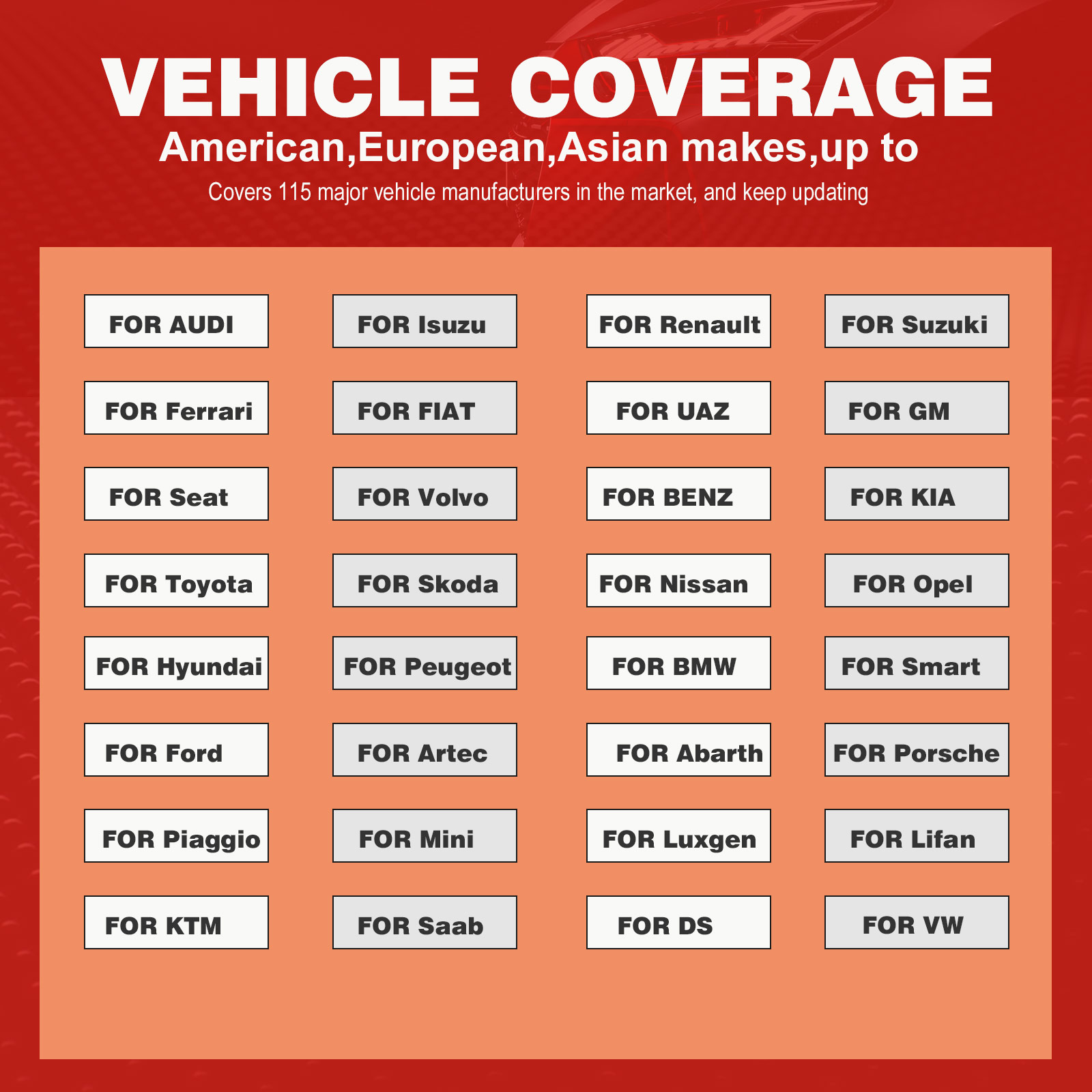 6. Cover Up to 115 Major Vehicle Manufacturers: EDIAG covers 115 major vehicle manufacturers in the market, and keep updating