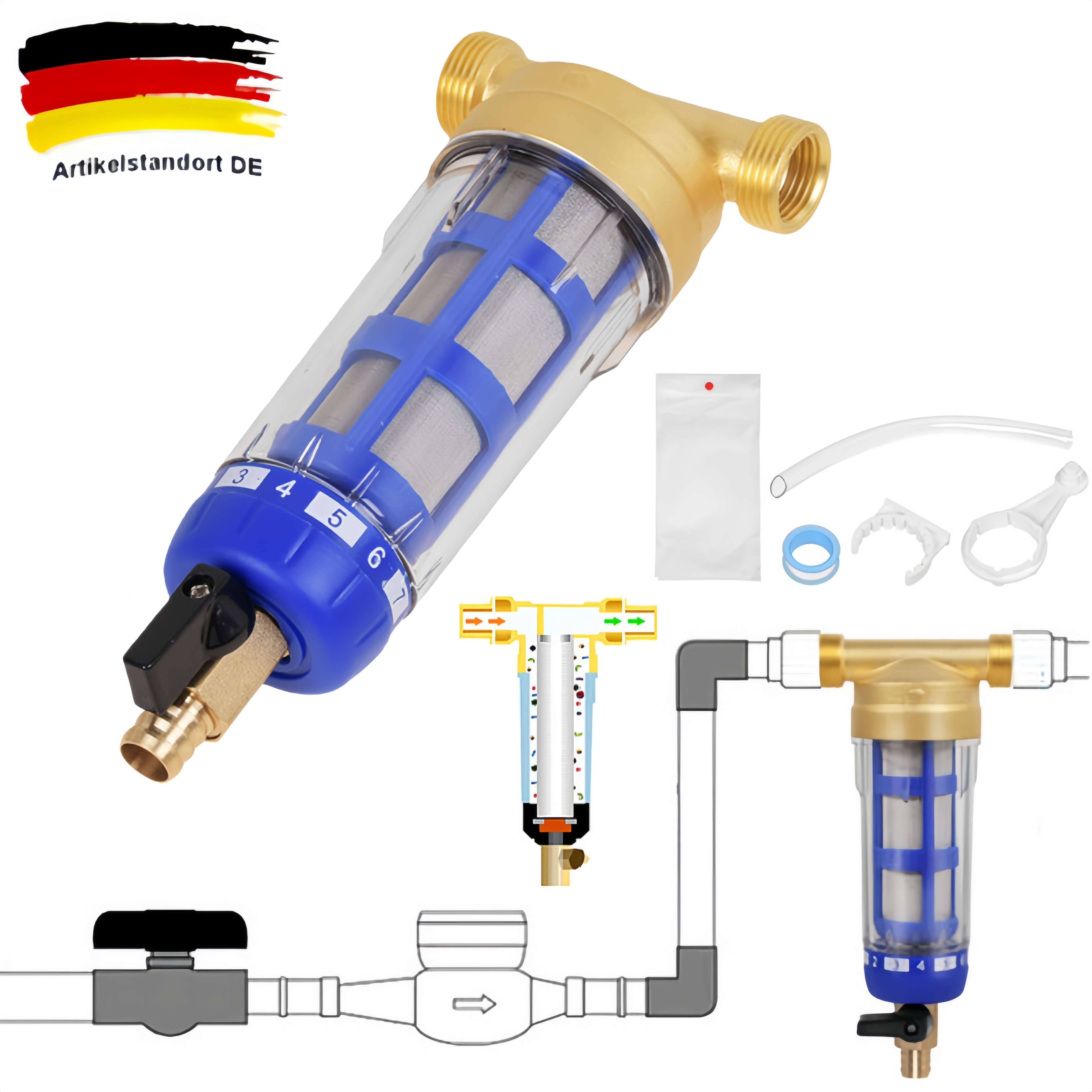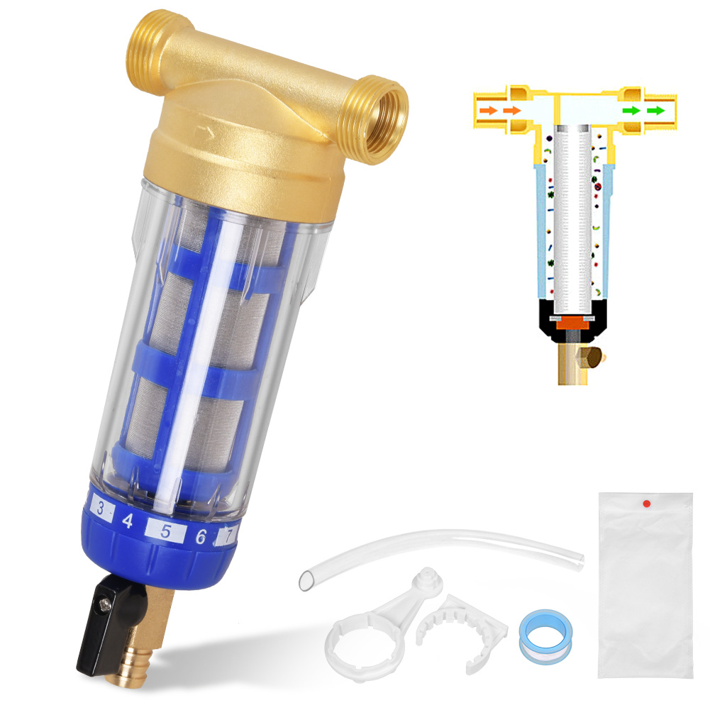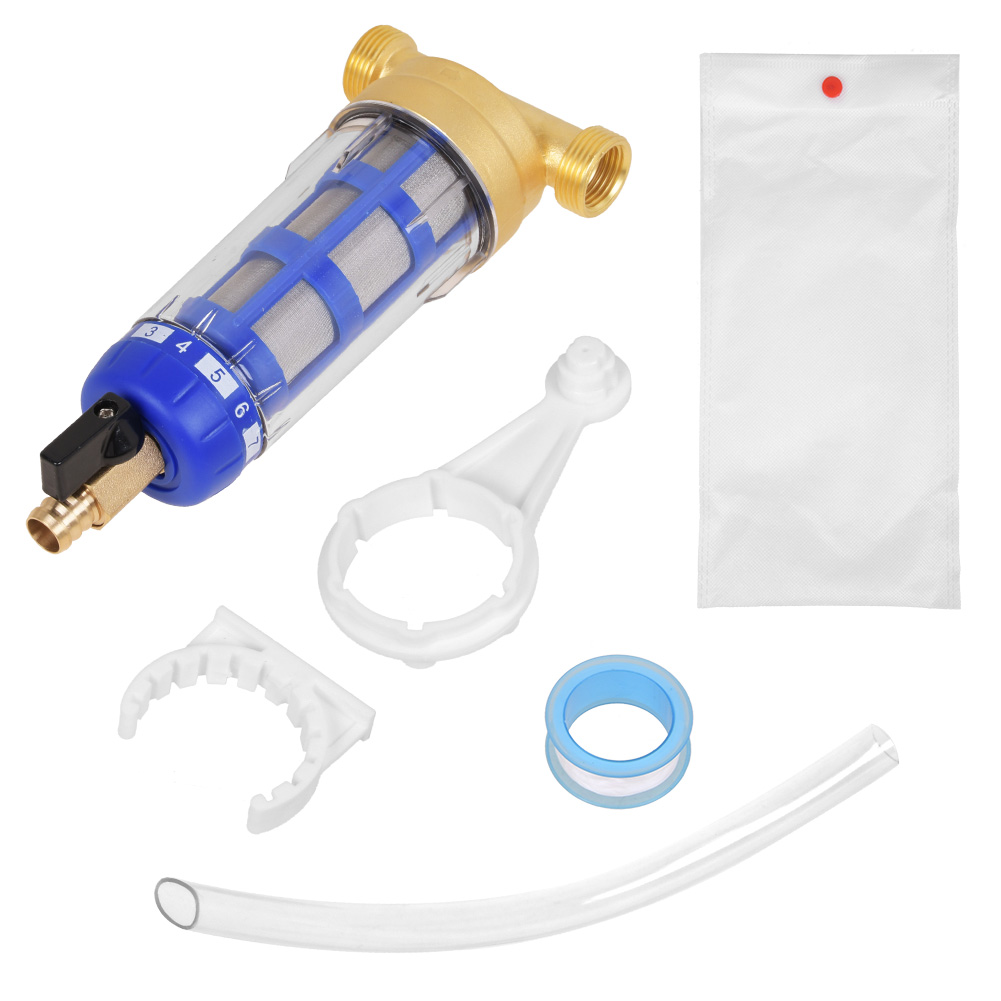 • Abfangen von Partikeln, Sand, Rost und anderen Schadstoffen im Wasser und Schutz von Rohrleitungen und Watgeräten im ganzen Haus.