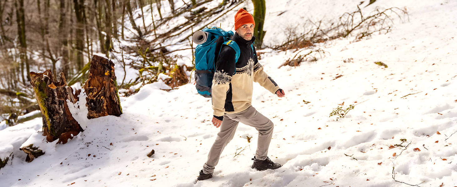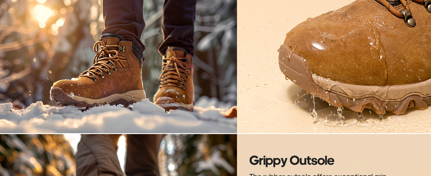 • Vegan Leather Upper: The upper of these men's winter boots offers durability and water resistance, ensuring longevity and protection against the elements.