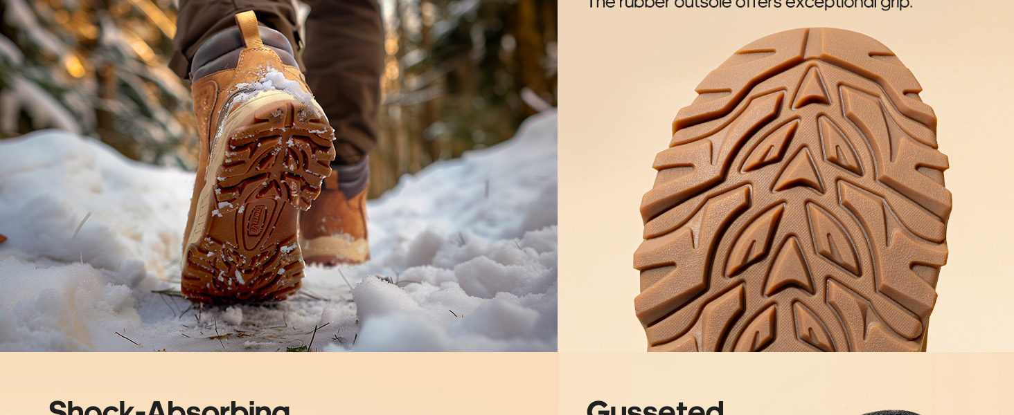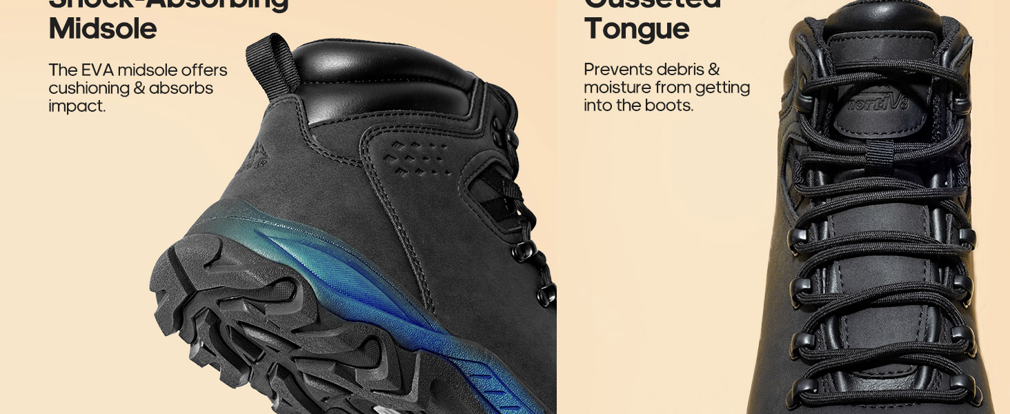 • Shock Absorption: Featuring an EVA cushioned midsole and anti-slip rubber outsole, these durable men's boots deliver superior shock absorption and reliable traction on various terrains.