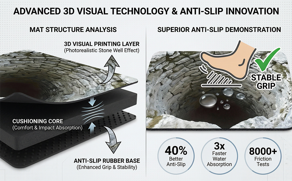 【Pet-Safe & Non-Slip Backing】: Crafted with soft, pet-friendly fabric and a strong slip-resistant base, this rug stays securely in place—even during the most enthusiastic pet investigations. Your furry friends can explore safely while the illusion stays perfectly intact