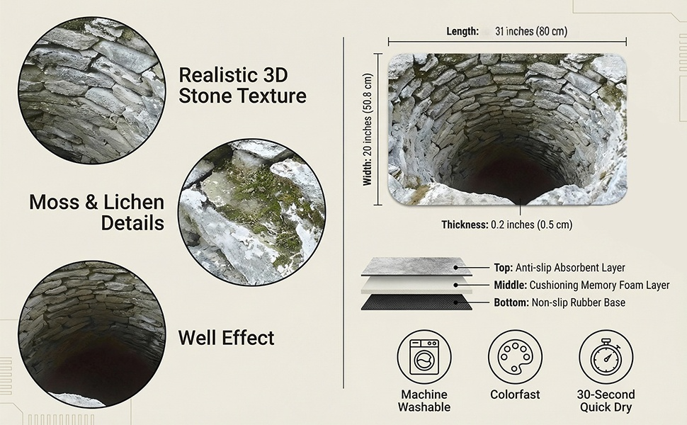 【Hyper-Realistic Depth Effect】: Featuring high-resolution printing, this rug creates a stunning "bottomless pit" illusion from certain angles. A true conversation starter, the 3D hole effect adds dramatic depth to any room—making it a standout piece in your home decor