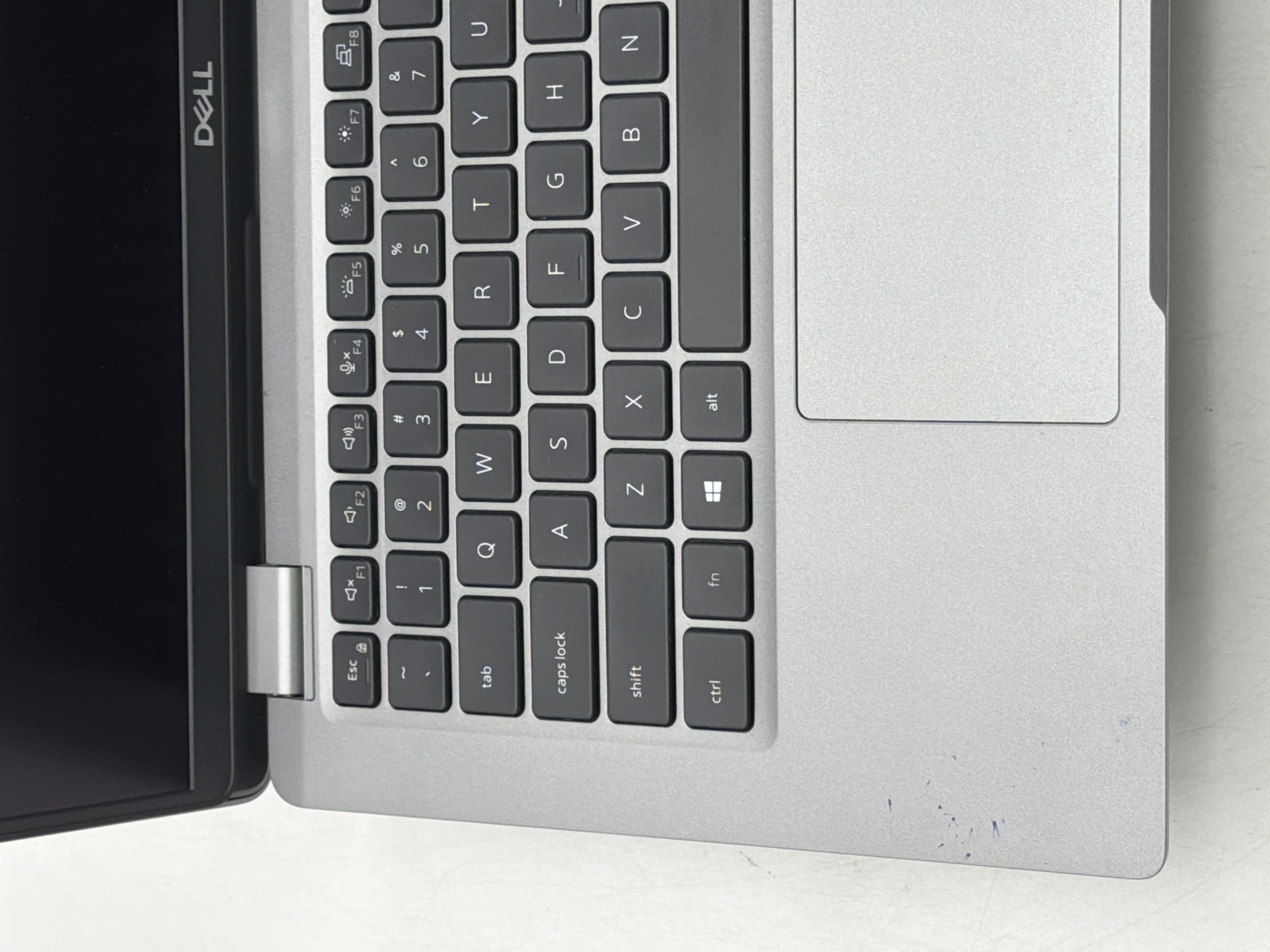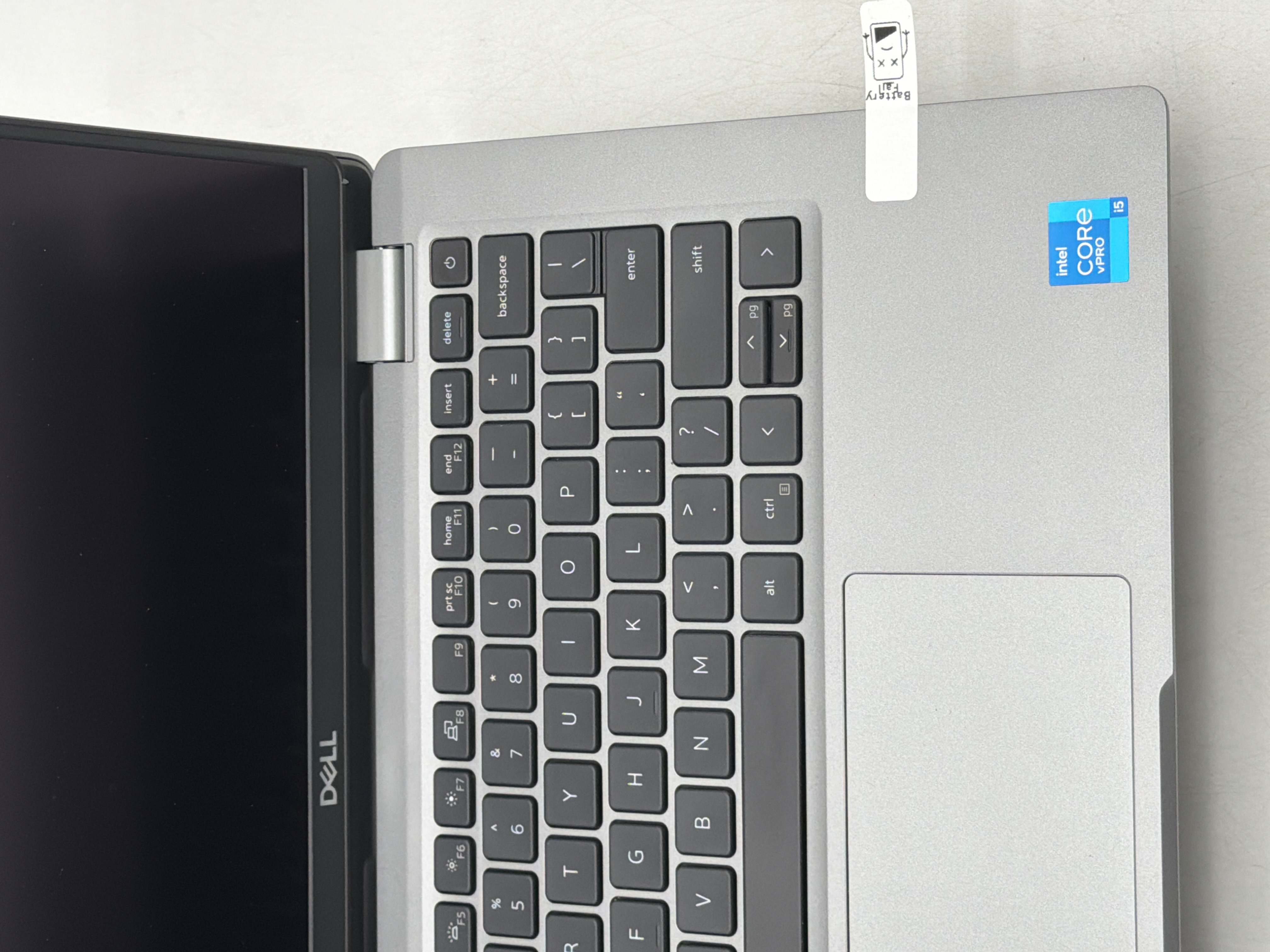 This listing is for a Dell Latitude 5320 (2020) equipped with an Intel Core i5-1145G7, 8GB RAM, and a 256GB SSD. The laptop powers on and functions but is sold without an operating system. Cosmetic wear is present, including scratches and scuffs. The battery is failed and will require replacement.