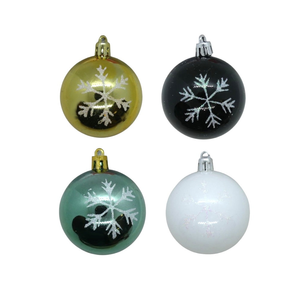 Boules de Noël lot de 4 décorations de sapin de Noël motif flocon de neige en plastique, multicolores