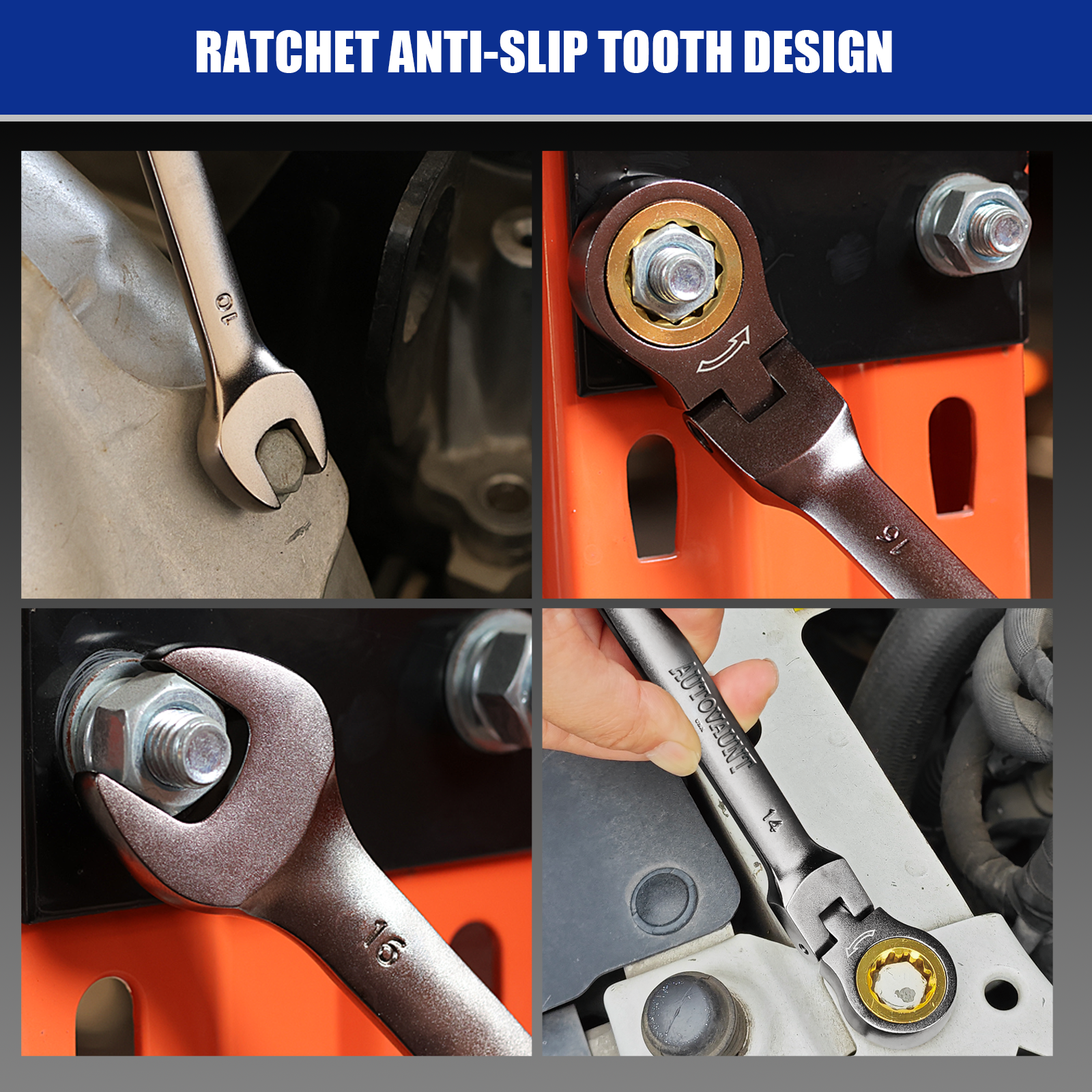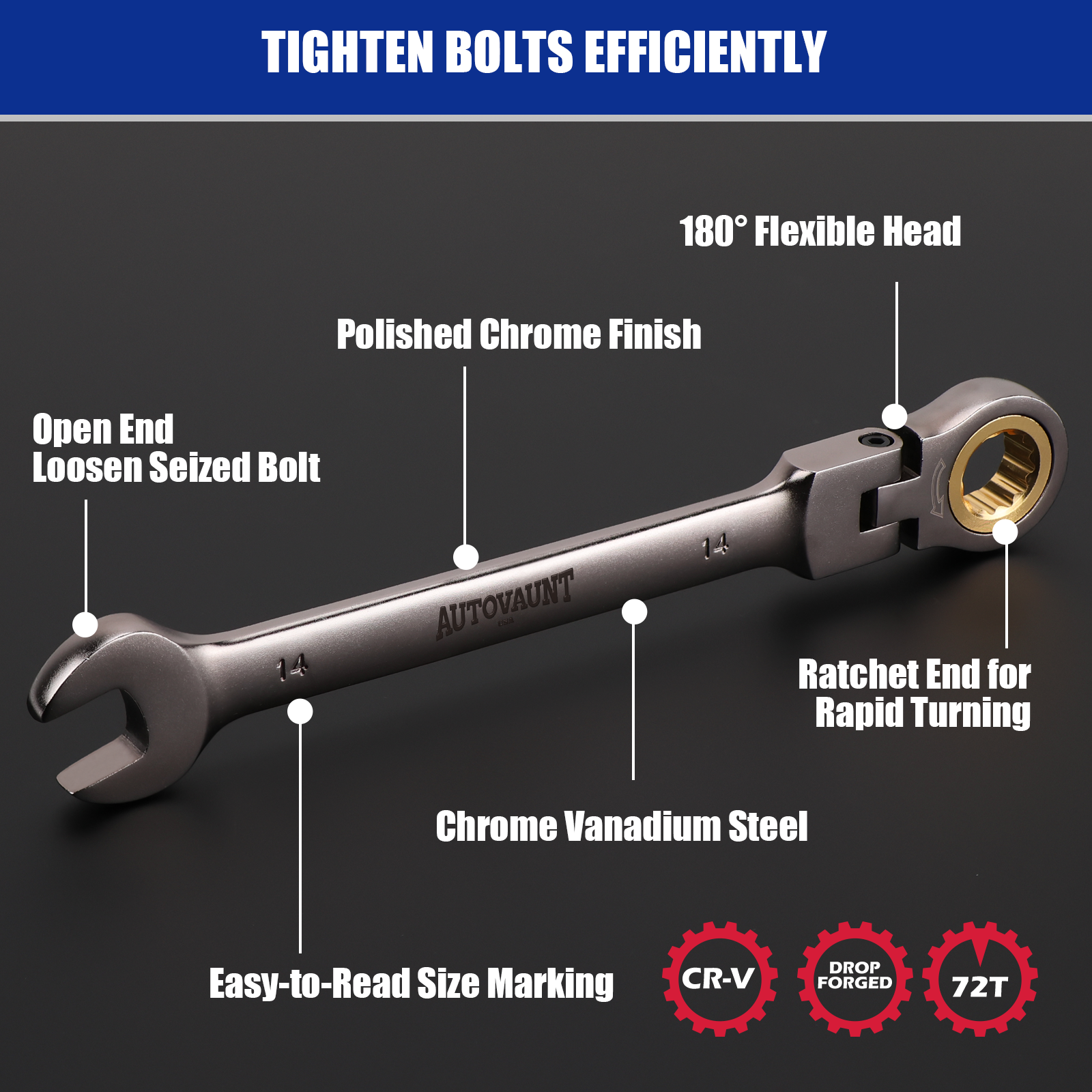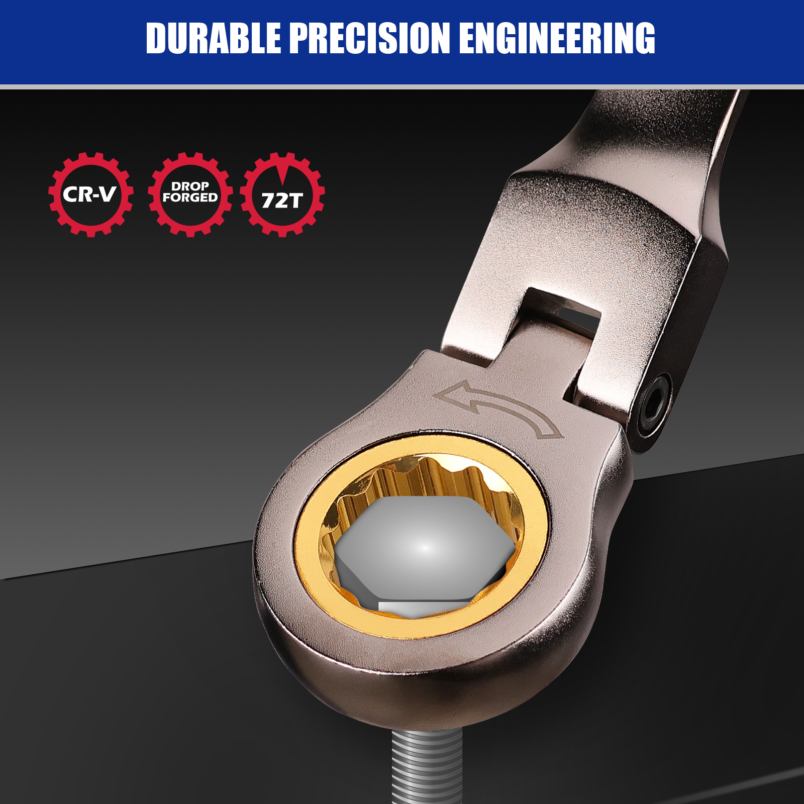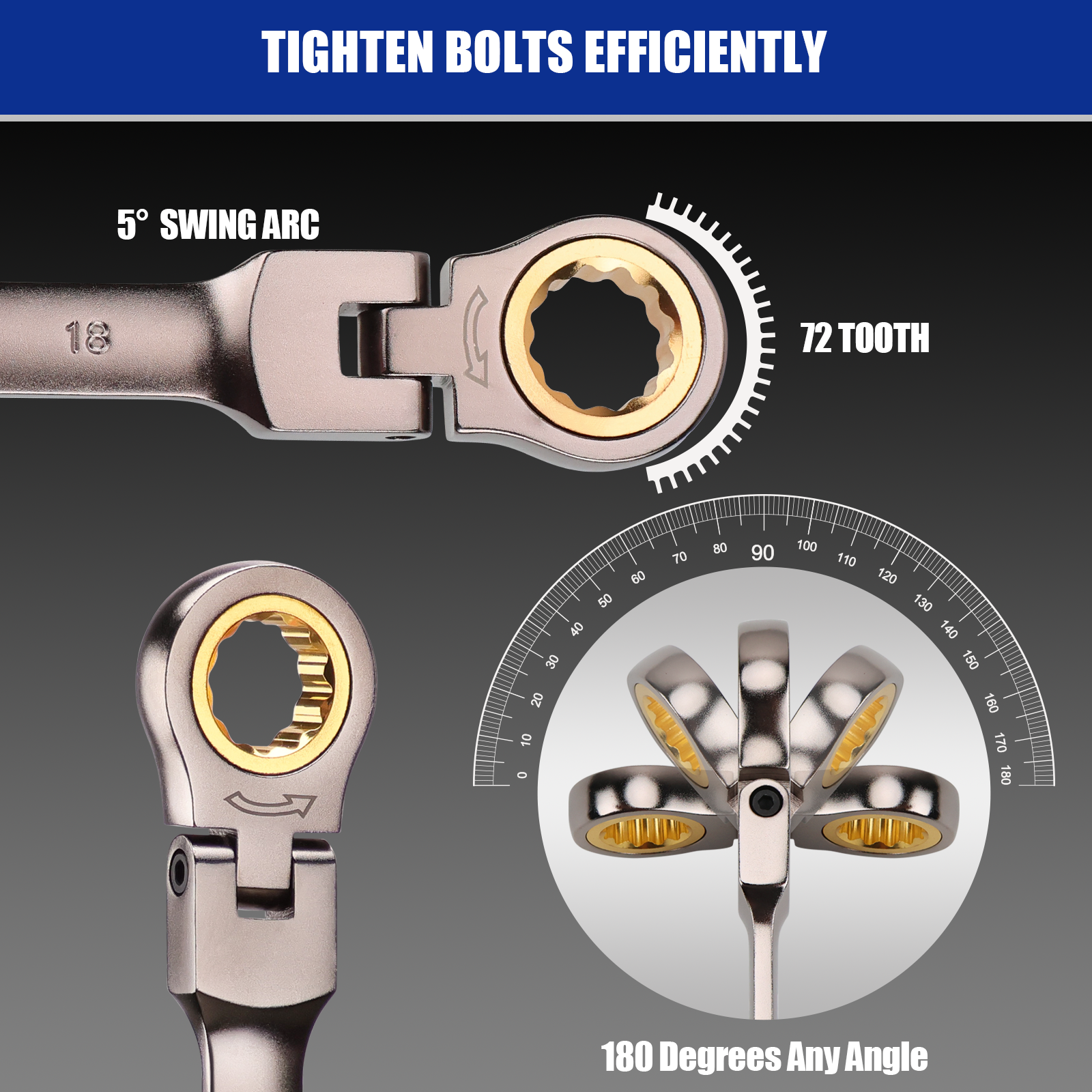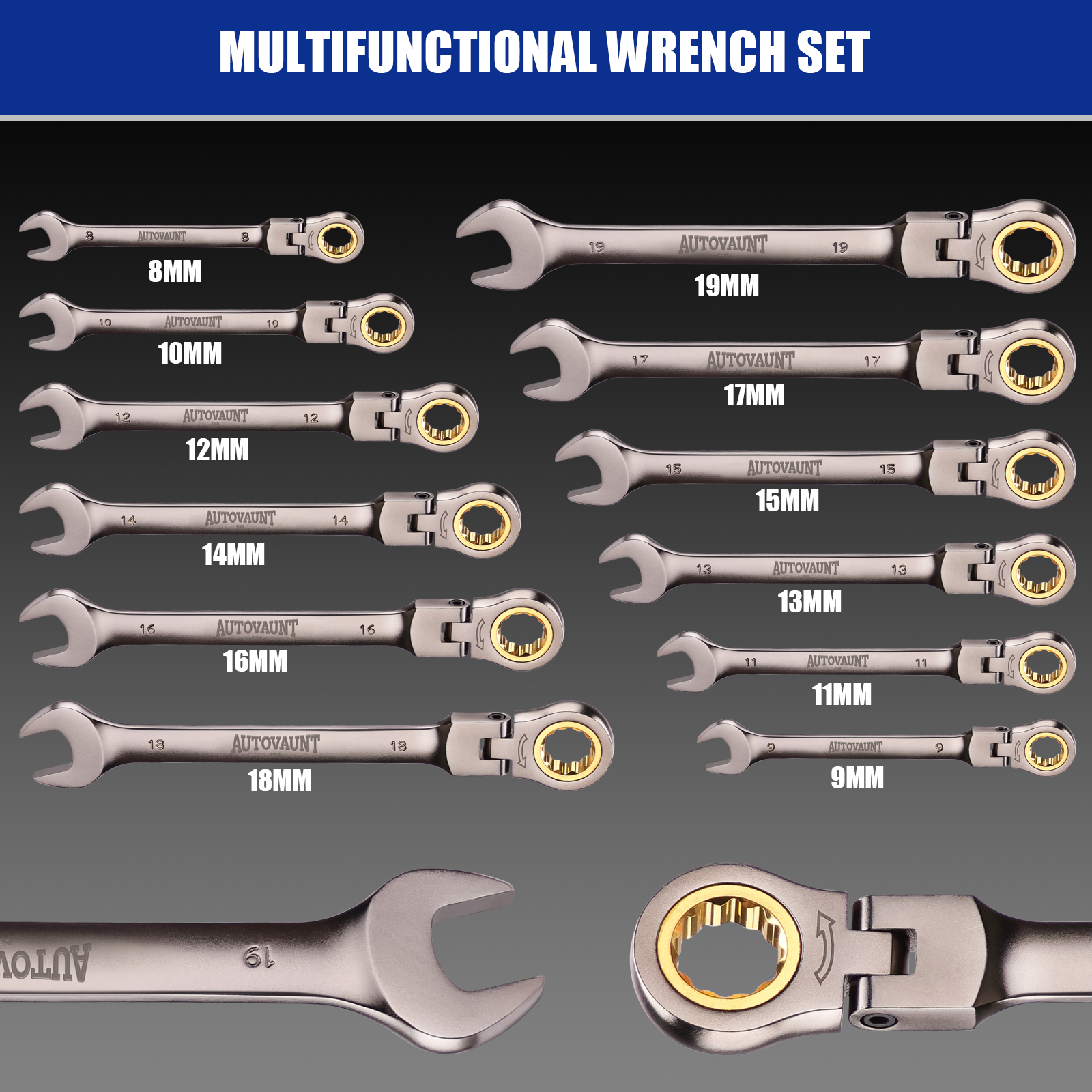 12PCS Ratcheting Wrench Set Flexible Head 8-19mm Metric Spanner Tool Combination