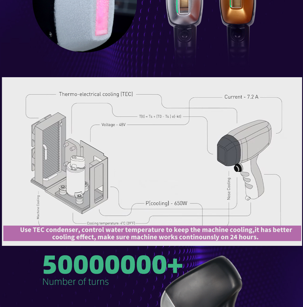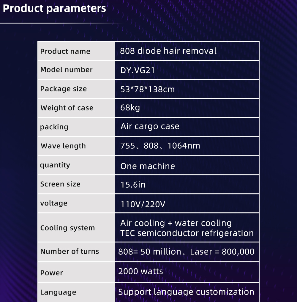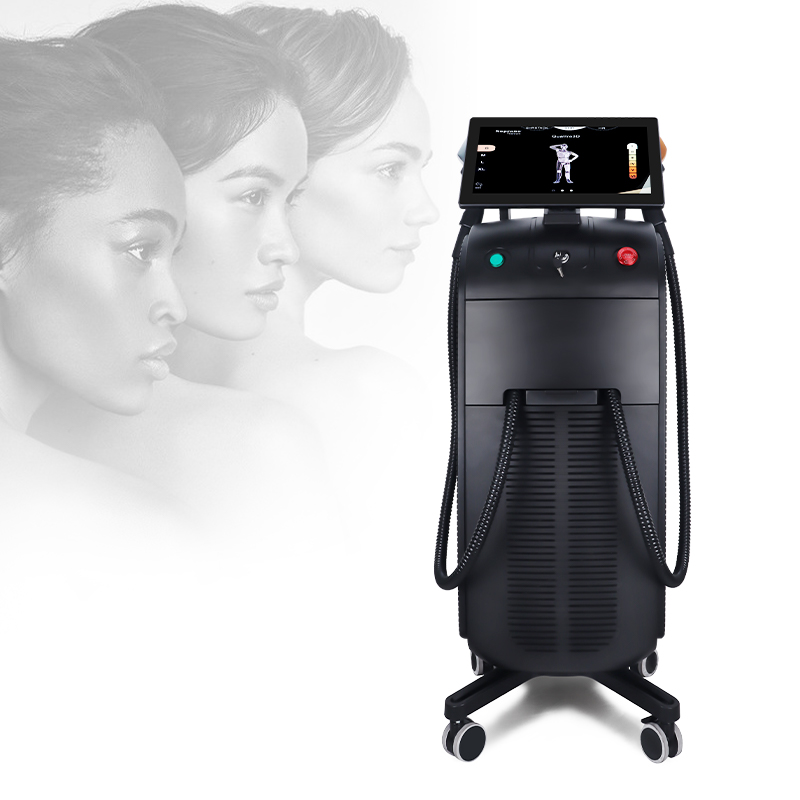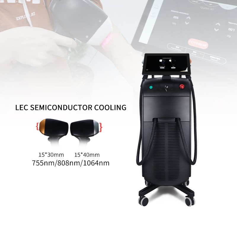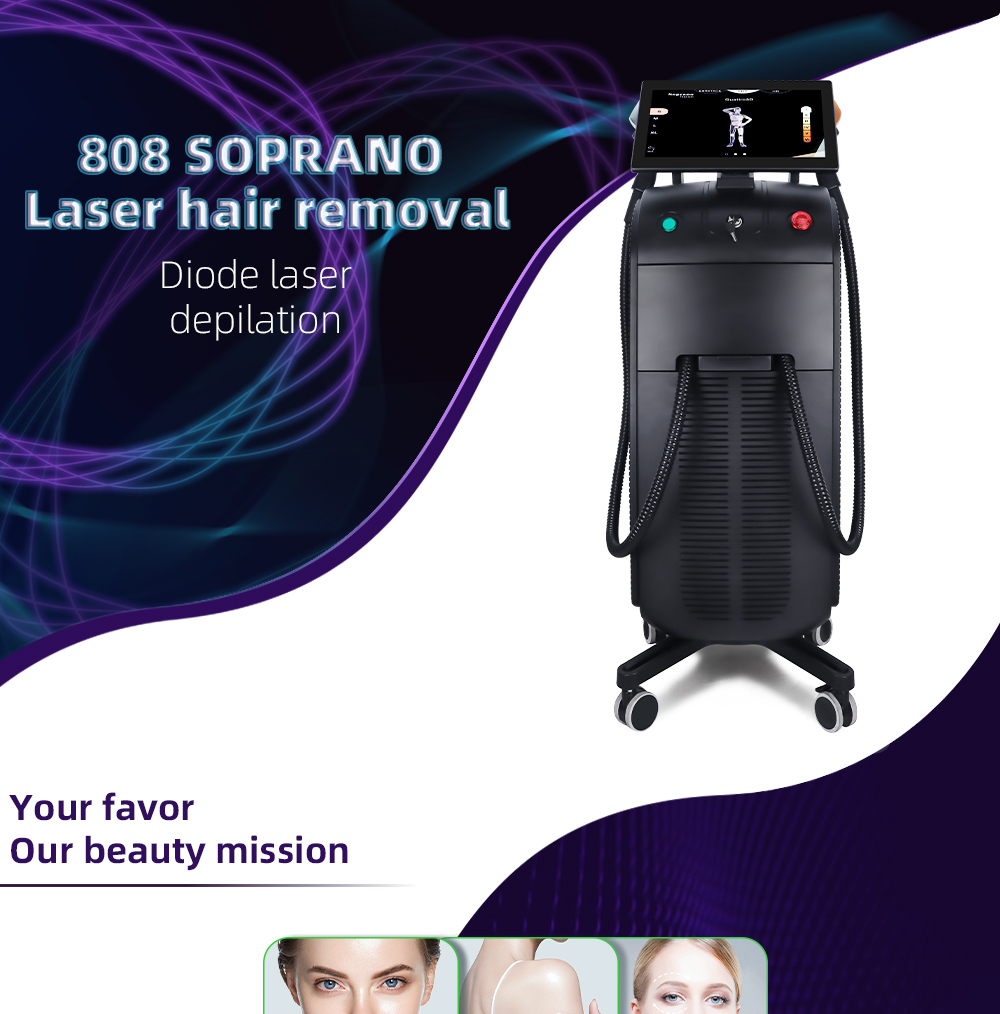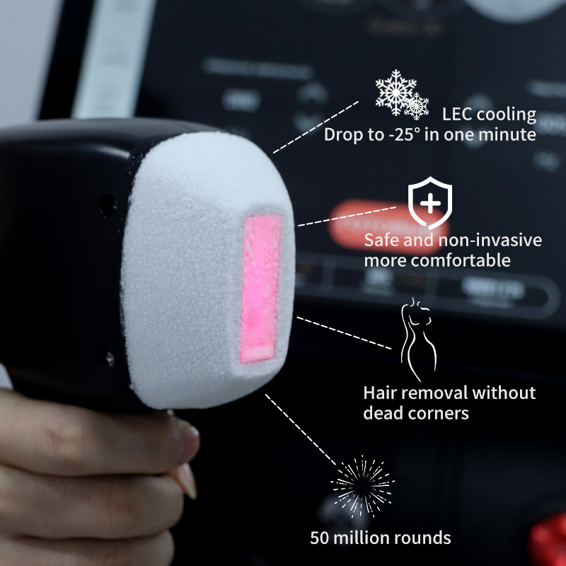 808nm Diode hair removal machine freeze through technological innovation, so that the treatment of head to negative temperature, unlike other burns the skin, to better protect the skin, hair follicle melanin by specific wavelength of absorption, and the heat exchange to destroy hair follicle, the energy can be shot down into the hair follicles within the hair follicle is destroyed energy decomposition, so that the hair follicles to stop growing, because the energy about 15% of the skin can penetrate the dermis layer, the epidermis and more with melanoma of the hair follicle deep through the heat damage to hair follicle degeneration and atrophy; achieve permanent hair removal results.