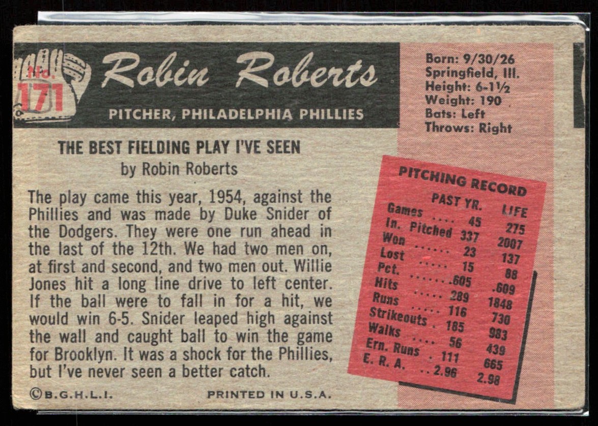 | Robin Roberts 1955 Bowman #171 Philadelphia Phillies |