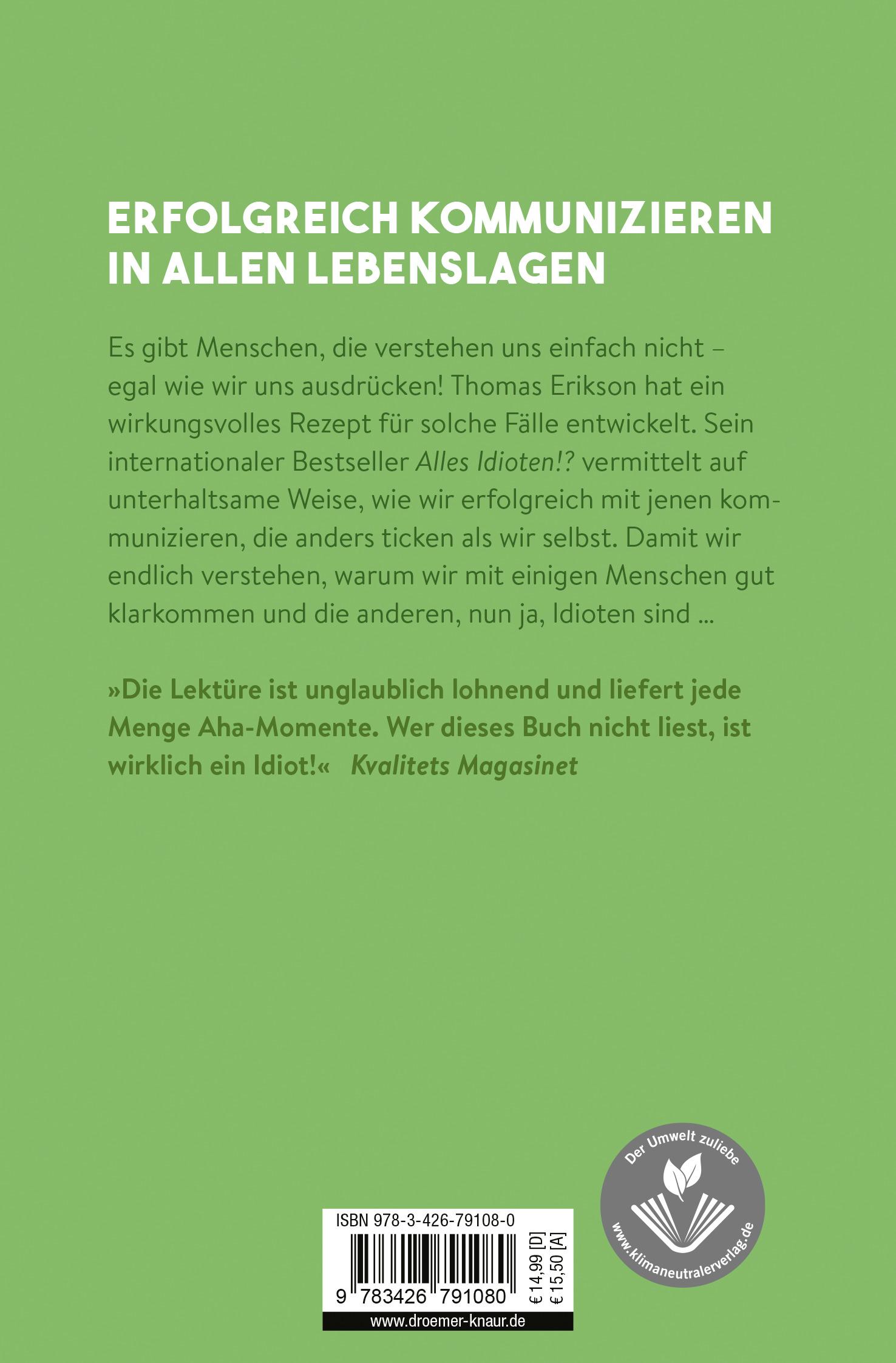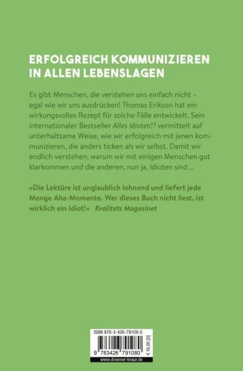 Autor Thomas Erikson fragt: Wie oft werden wir nicht oder falsch verstanden Wie oft sind unsere Beziehungen zu anderen Menschen von Missverständnissen getrübt Wie oft glauben wir, wir seien nur von Idioten umgeben Kurzum: