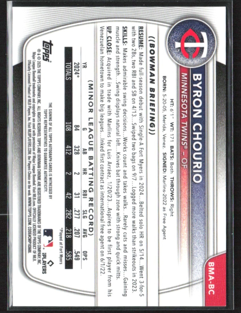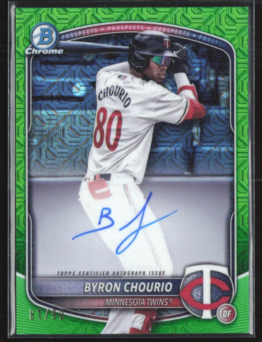 | Byron Chourio 2025 Bowman Chrome Mojo Mega Box Green Auto /99 #BMA-BC Minnesota |