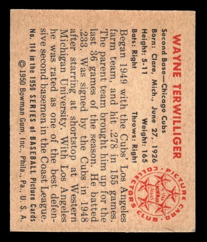 1950 Bowman Baseball #114 Wayne Terwilliger EX *k1